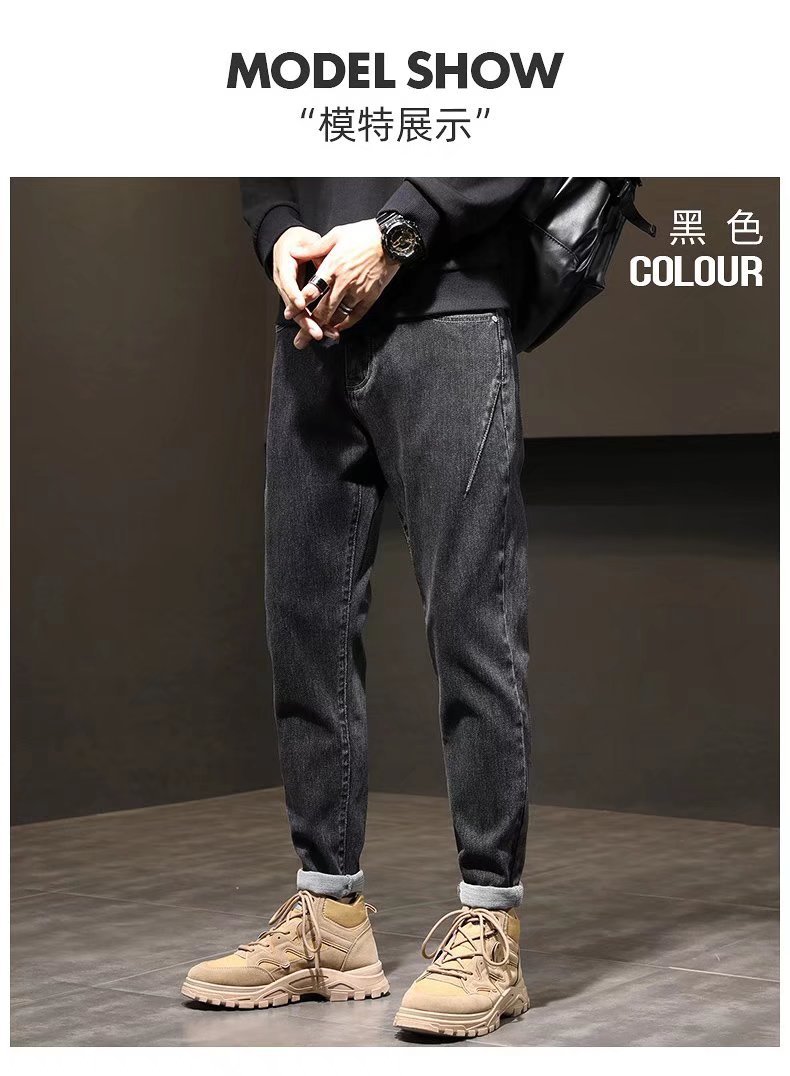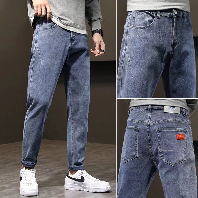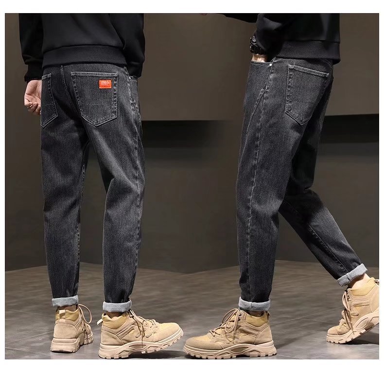 Trendy brand jeans for men's spring and autumn, Korean style small straight leg casual nine-inch pants, youth fashion and cool Harem pants