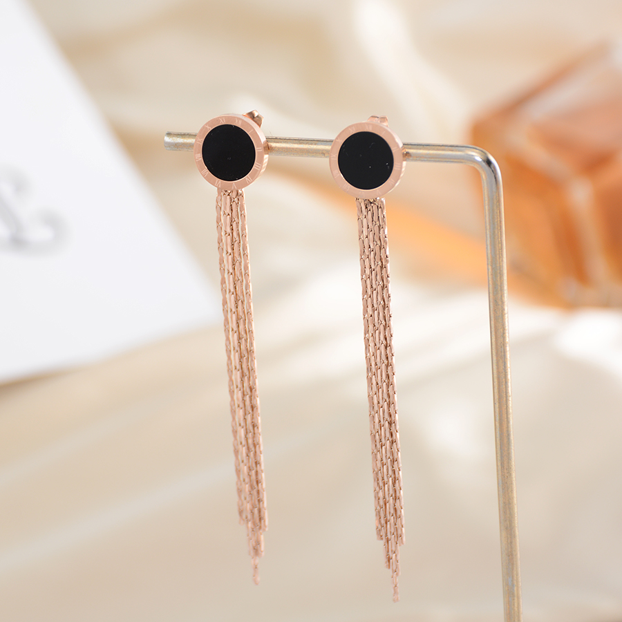 Trendy diamond-encrusted small foot earrings, titanium steel rose gold earrings, enriching clothing and food accessories for women, European and American