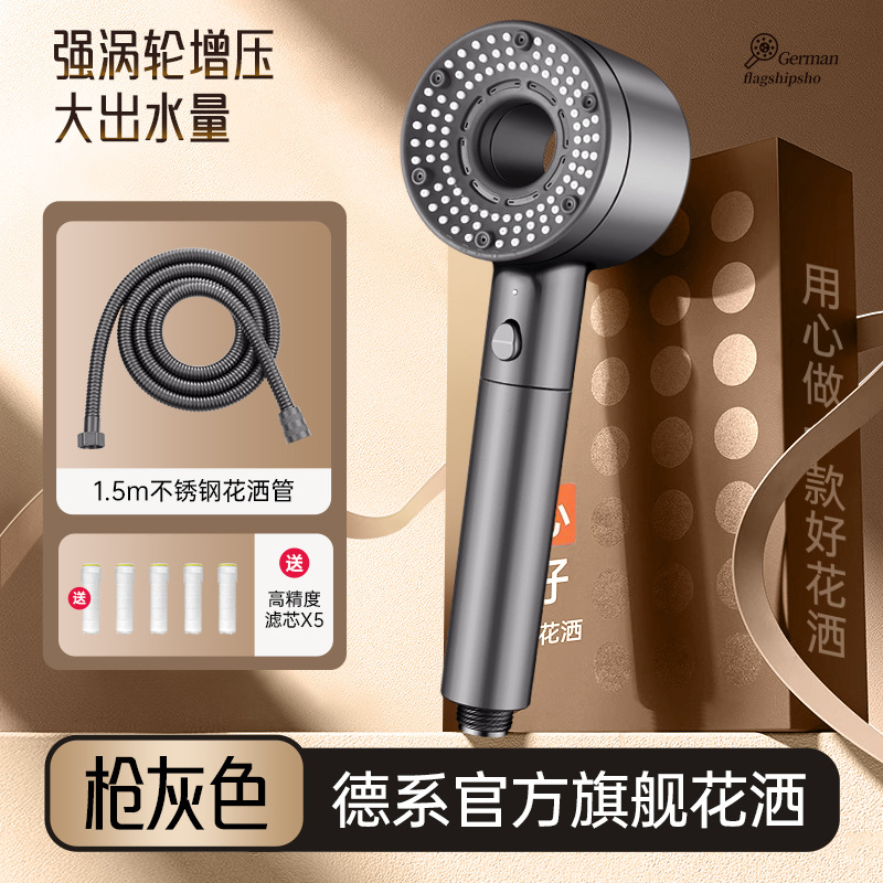 【 Titanium Grey Set 2】 Pressurized Showerhead + 1.5-meter Explosion-proof Hose (with 5 Filter Elements included)