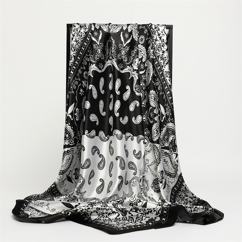 Two-color color-blocked cashew nut silk scarf, European and American retro silk scarf, silk-like scarf, 90cm large square scarf, thin headscarf shawl