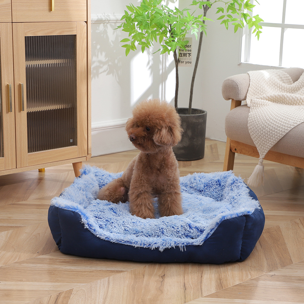 Two-color long-haired chicken plush dog bed, winter fleece thickened pet sleeping pad, detachable and washable PP cotton cat bed pad wholesale