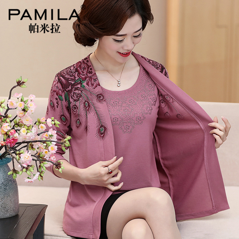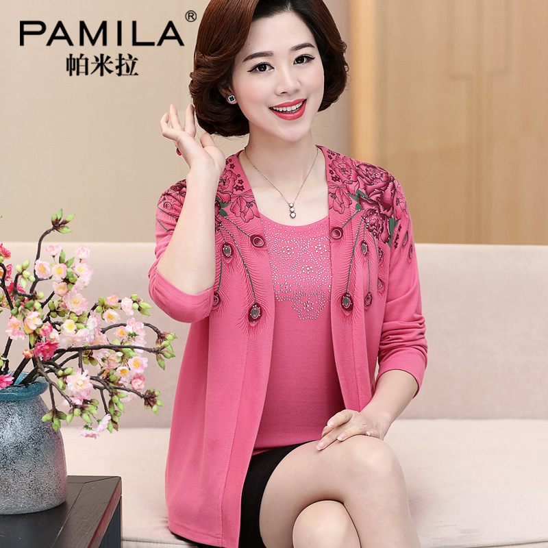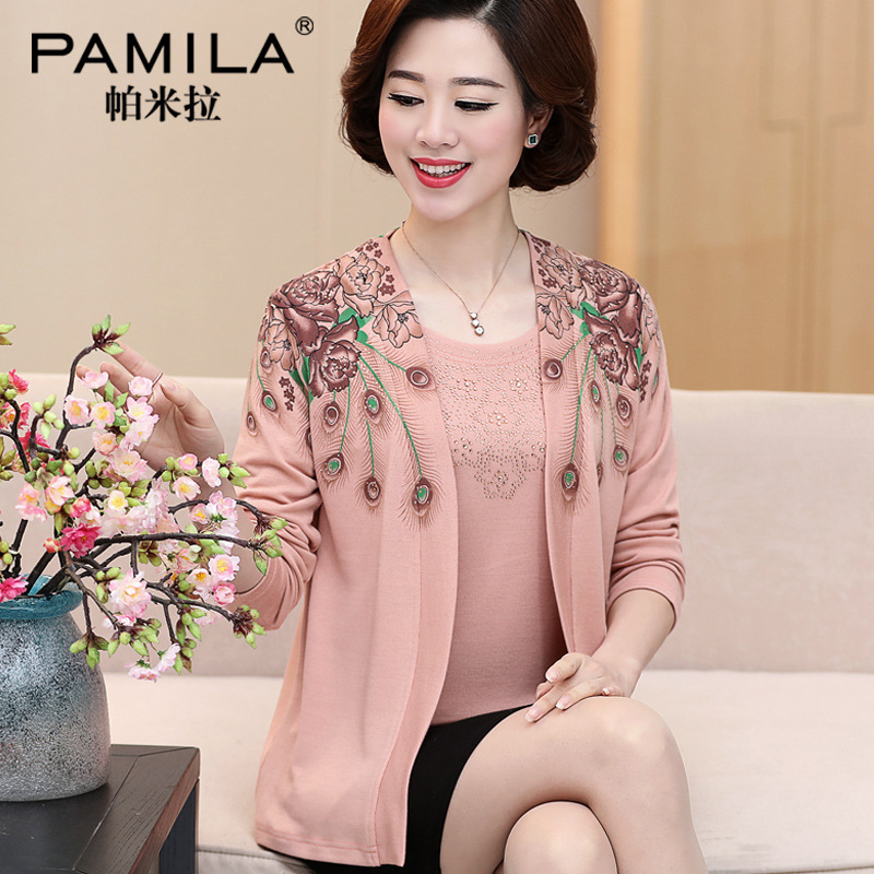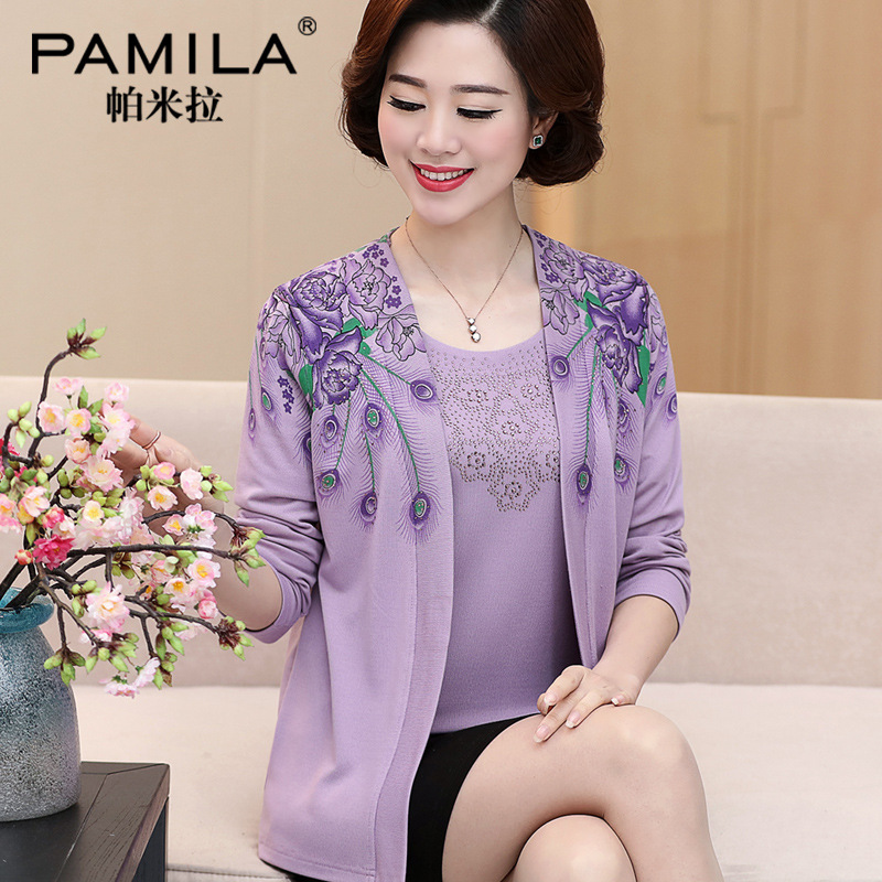 Two-piece knitted sweater, cardigan, middle-aged and elderly women's top, spring and autumn light jacket, short style, 40 years old, 50