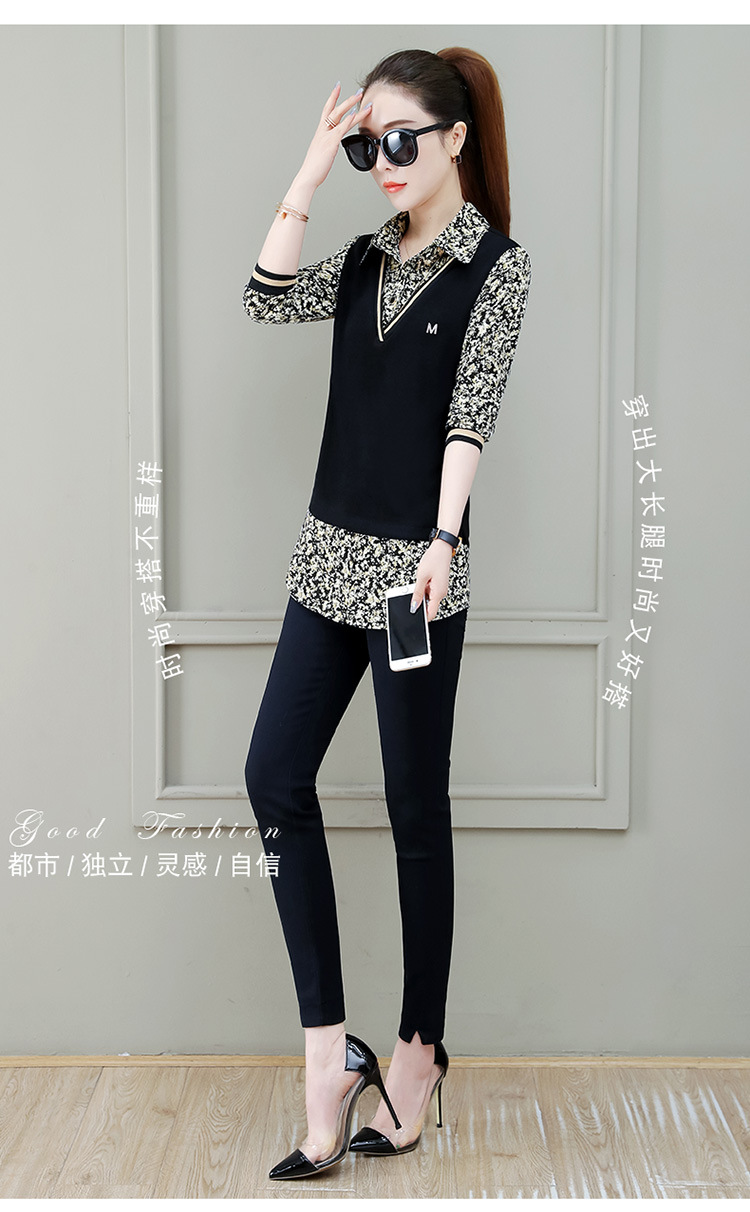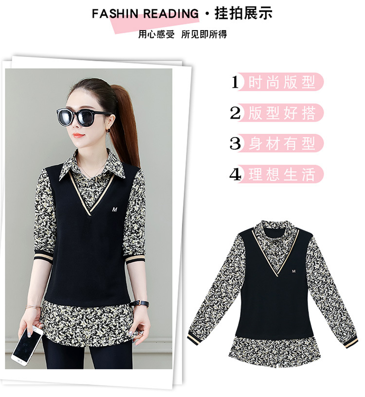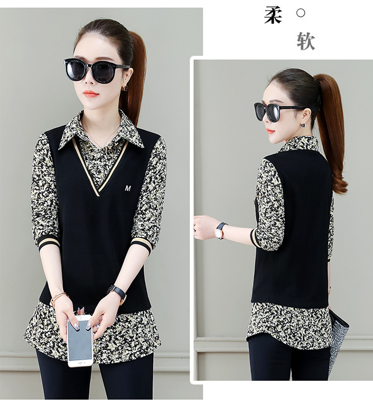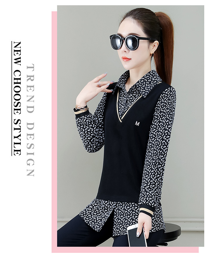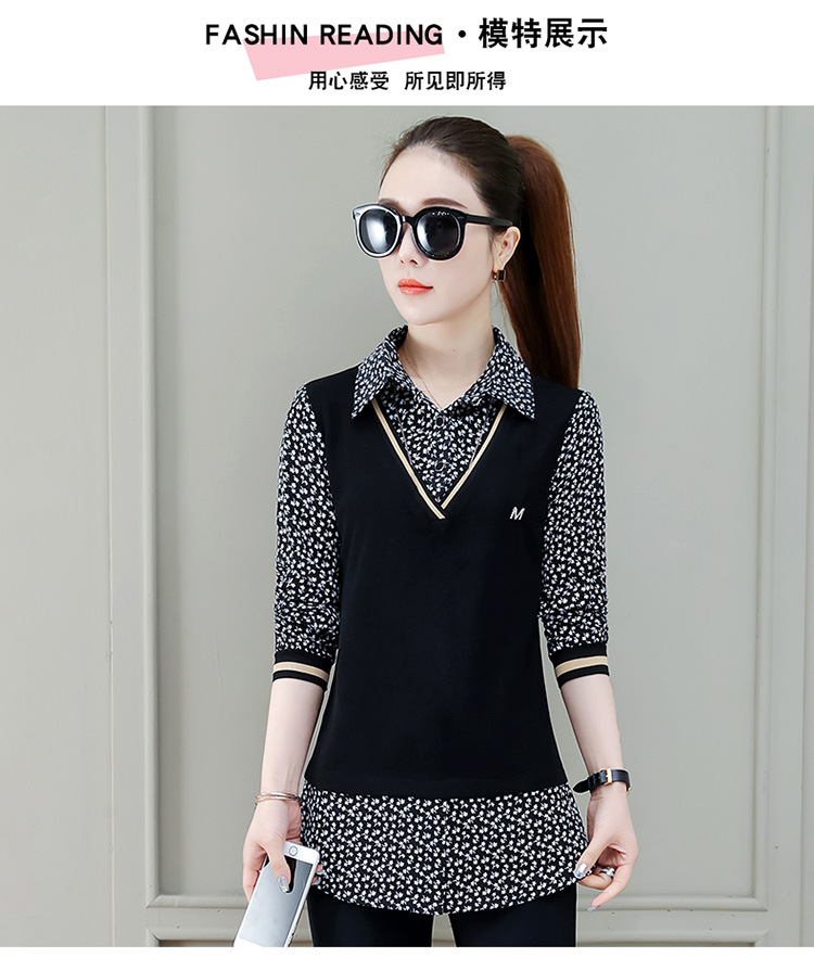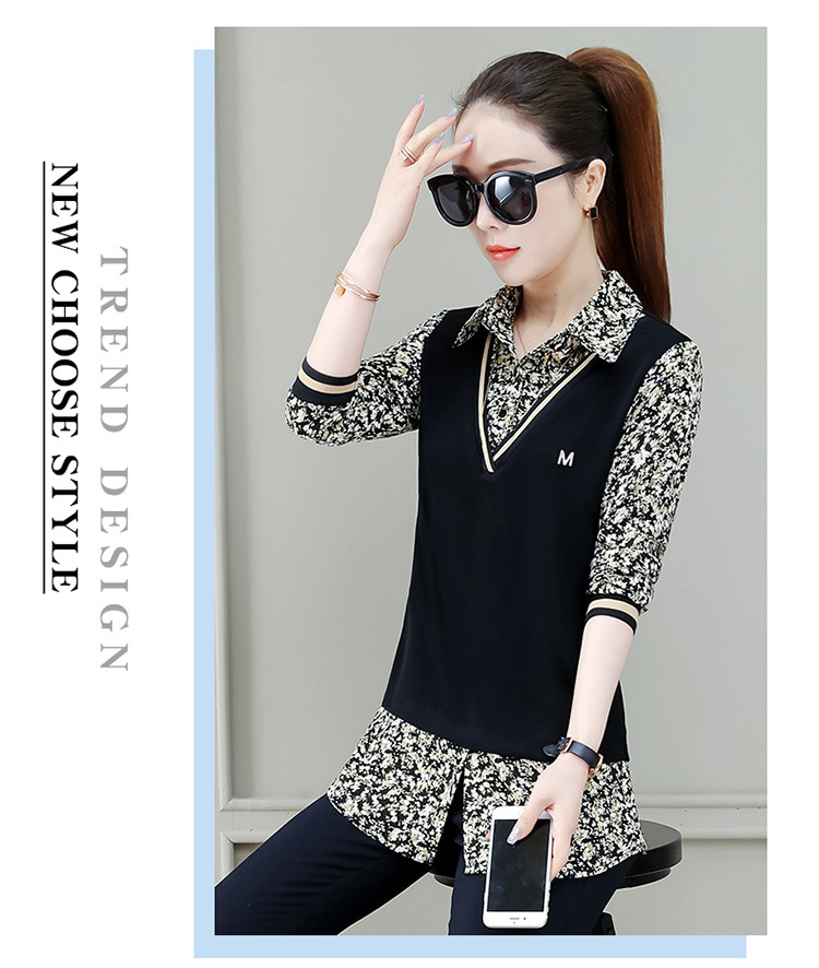 Two-piece shirt for women's 2022 new autumn collection: Stylish floral print shirt, long-sleeved top, women's mini blouse, Spring and autumn