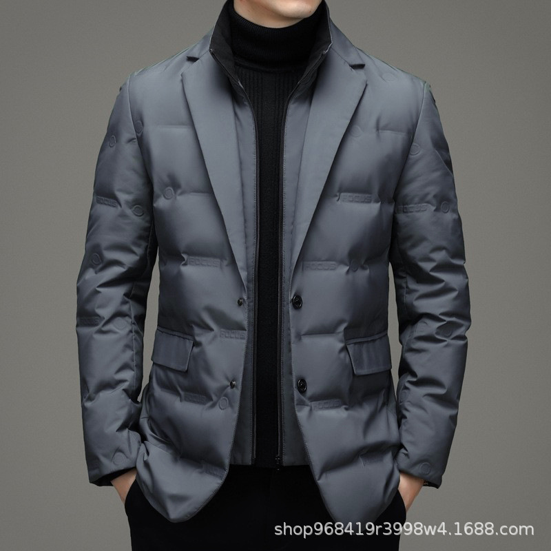 Two pieces of warm, casual and fashionable down jackets for men that can be taken off the stand-up collar for autumn and winter