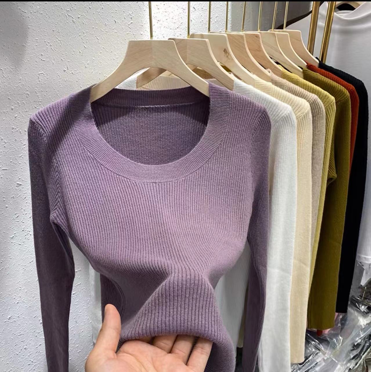 U-neck knitted sweater for women, Dongdaemun, South Korea, collarbone exposed, solid color Andy fleece base layer, Andy fleece long-sleeved shirt