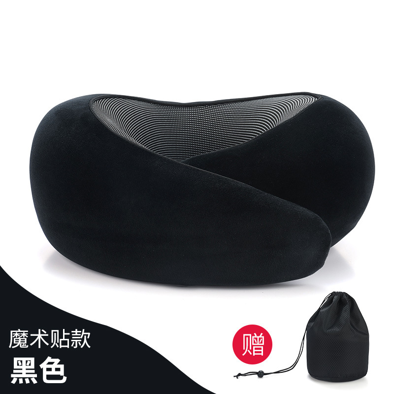 Snail U-shaped Pillow - Deep Black Velcro Style (with Black Storage Bag)