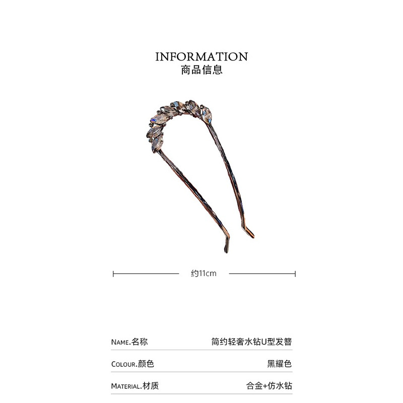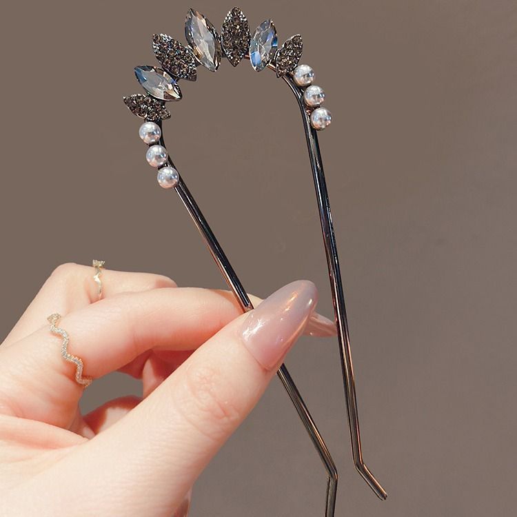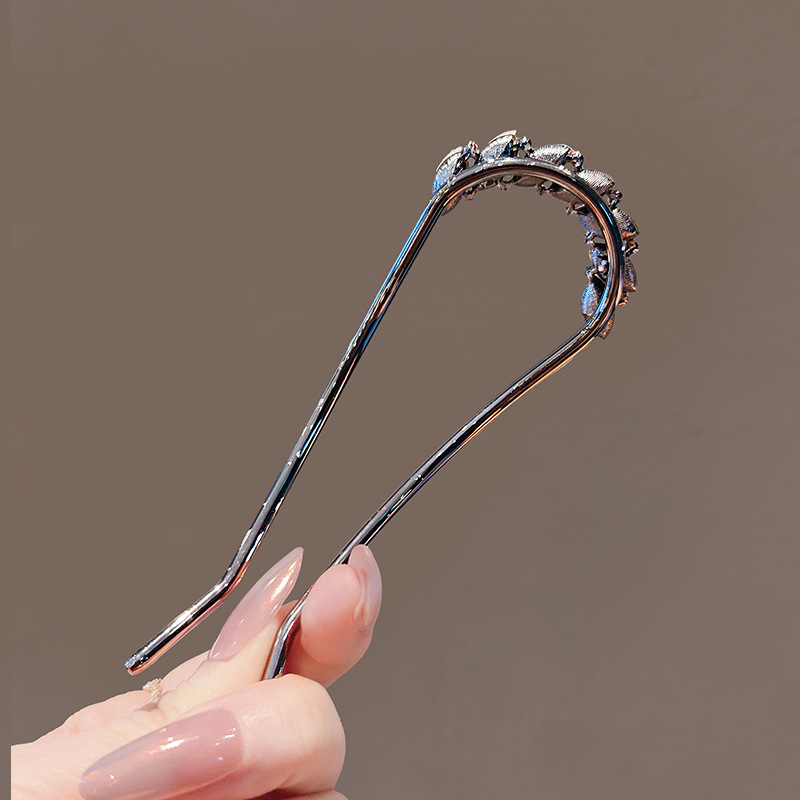 U-shaped hairpin, women's leaf crystal elegant hairpin, high-end metal hairpin, coiled hair magic tool, simple hairpin and comb