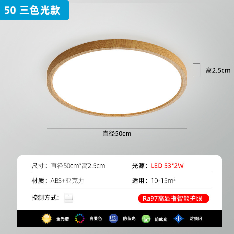 Ultra-thin bedroom ceiling lamp, new Chinese-style retro solid wood living room lamp, modern and simple full-spectrum eye-protecting study lamp