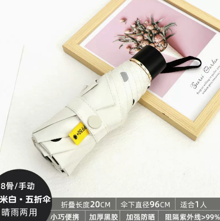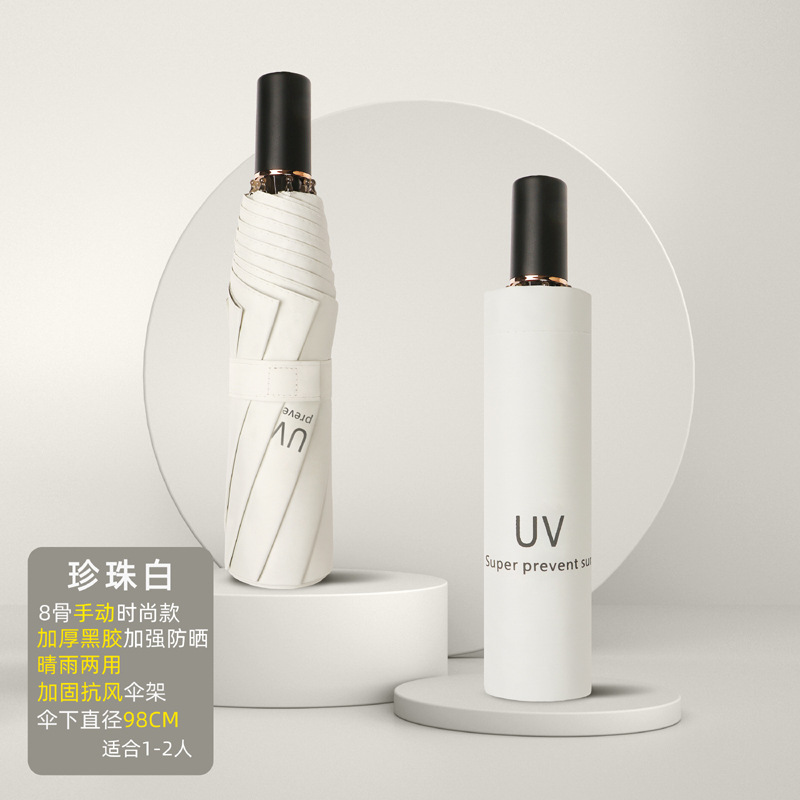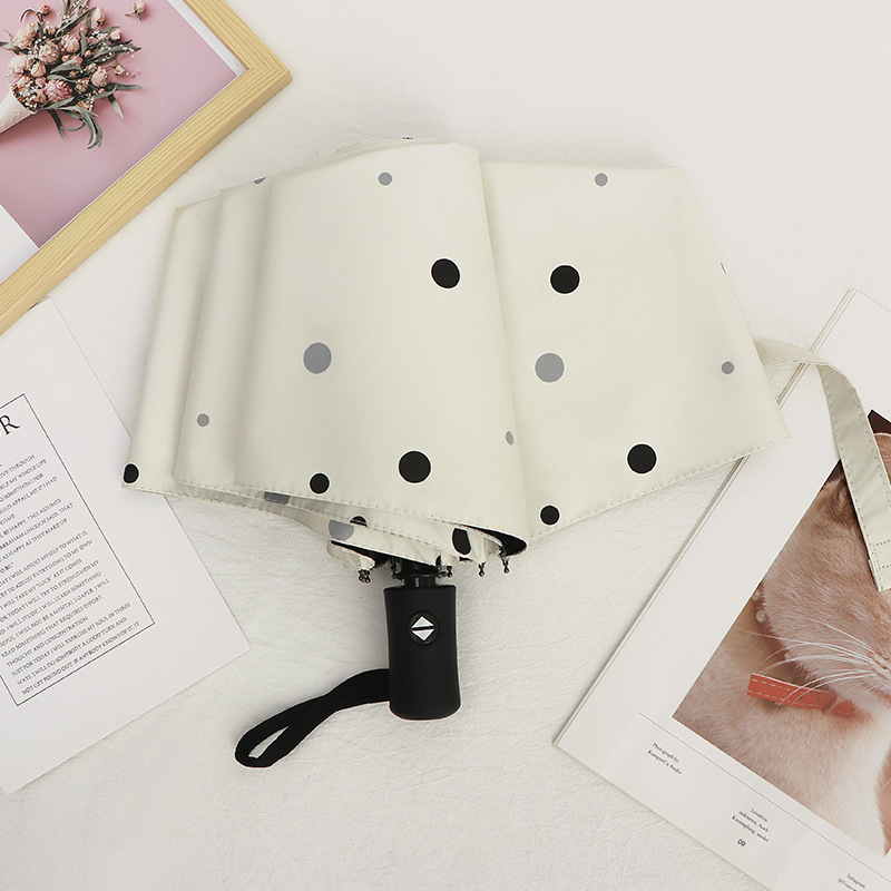 Umbrella black vinyl classic polka dot umbrella, cute girl sun protection umbrella, UV protection black vinyl student umbrella, automatic folding
