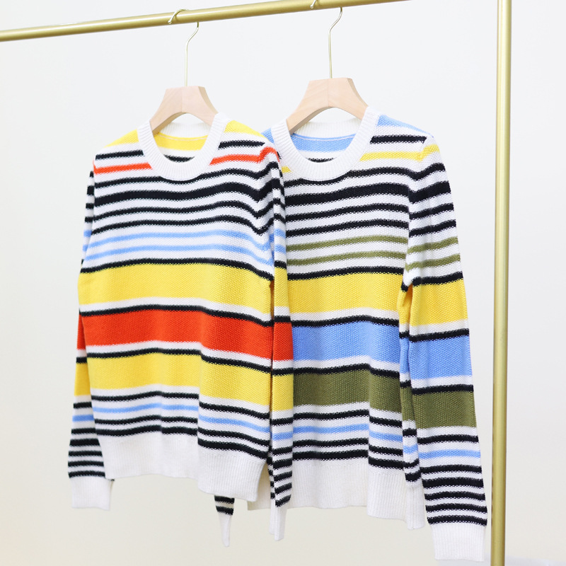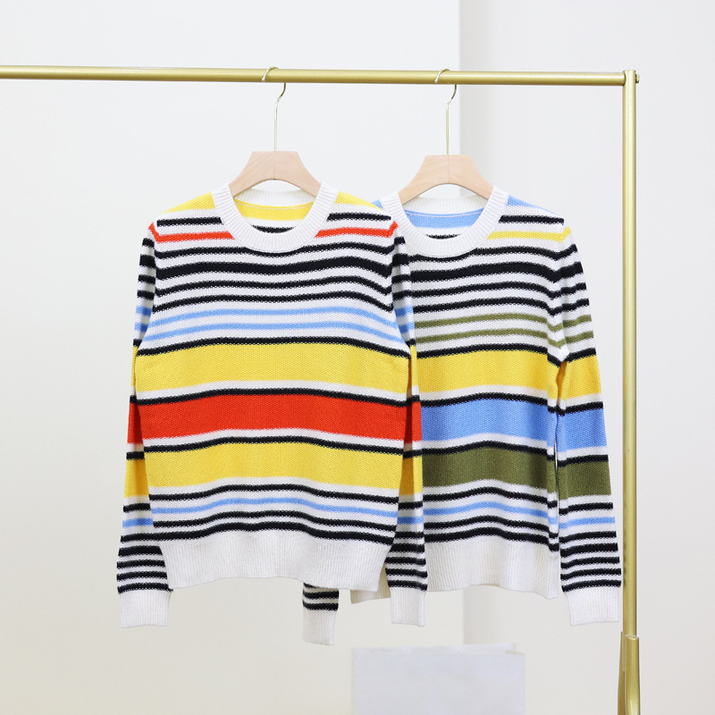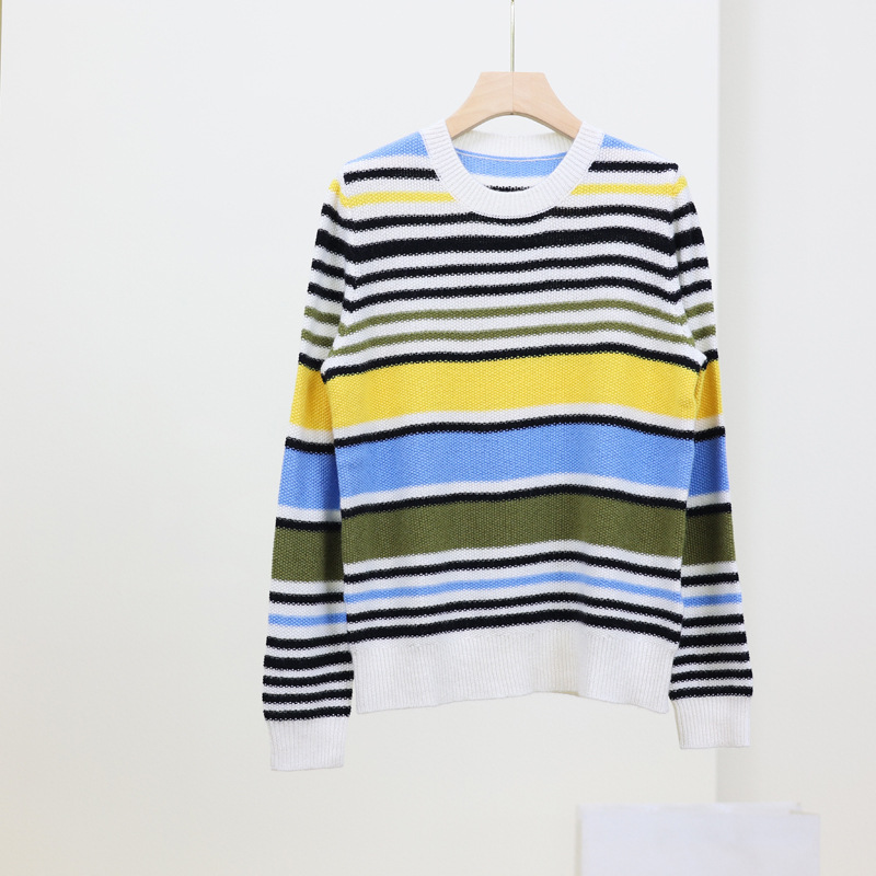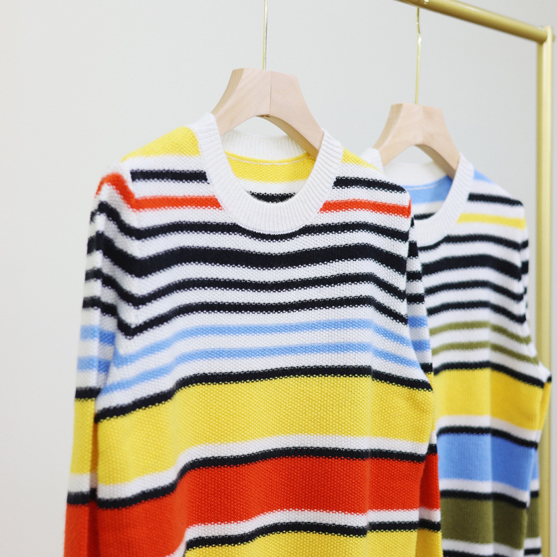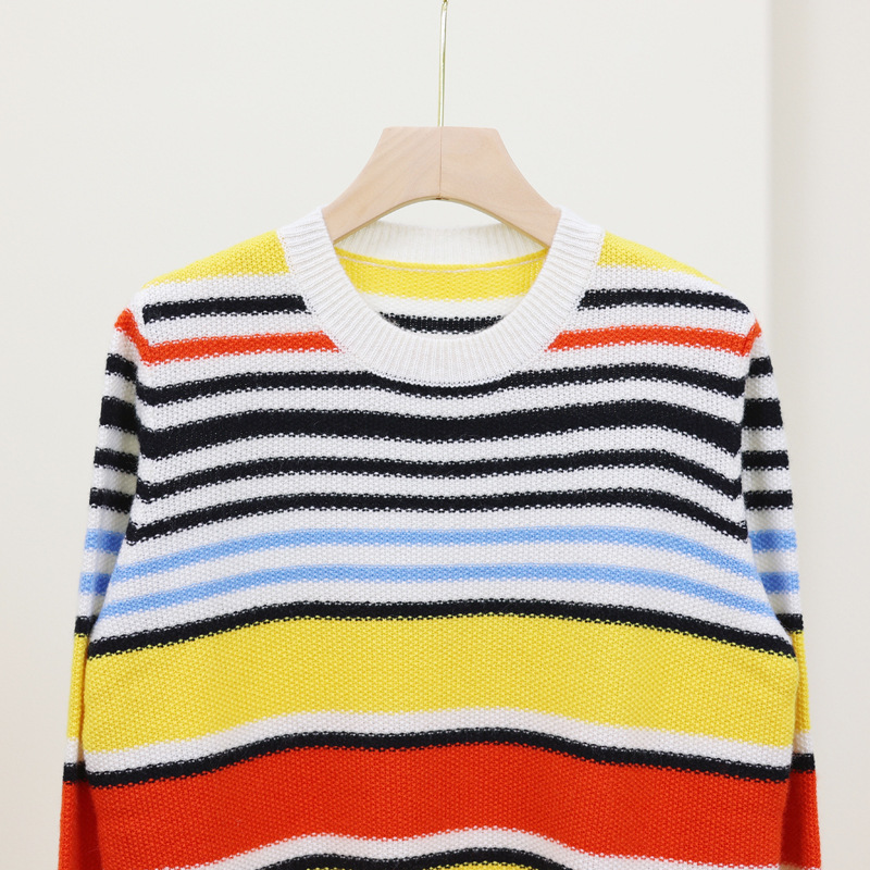 Umu Max Autumn and Winter new 100 pure cashmere sweater, round-neck rainbow striped pullover sweater, high-end women's cashmere sweater