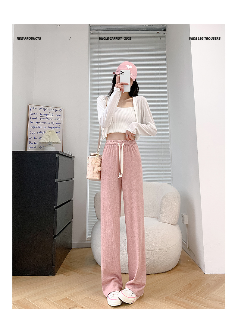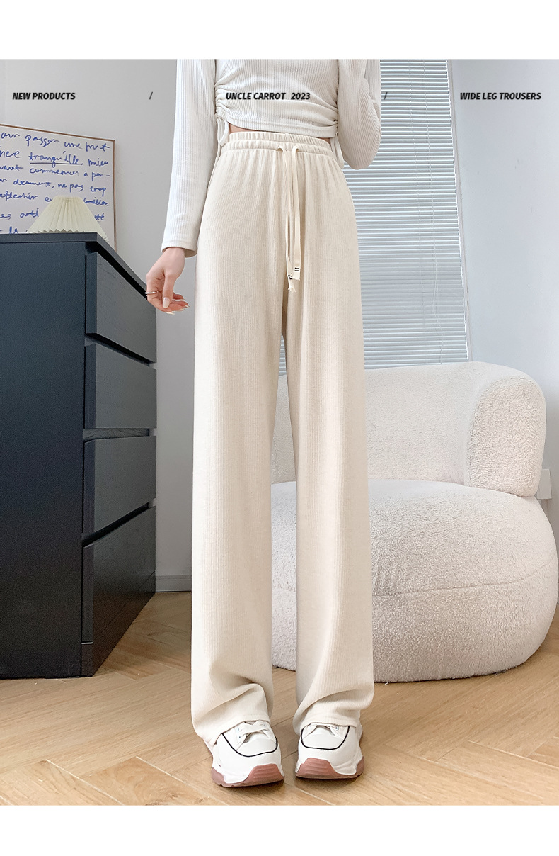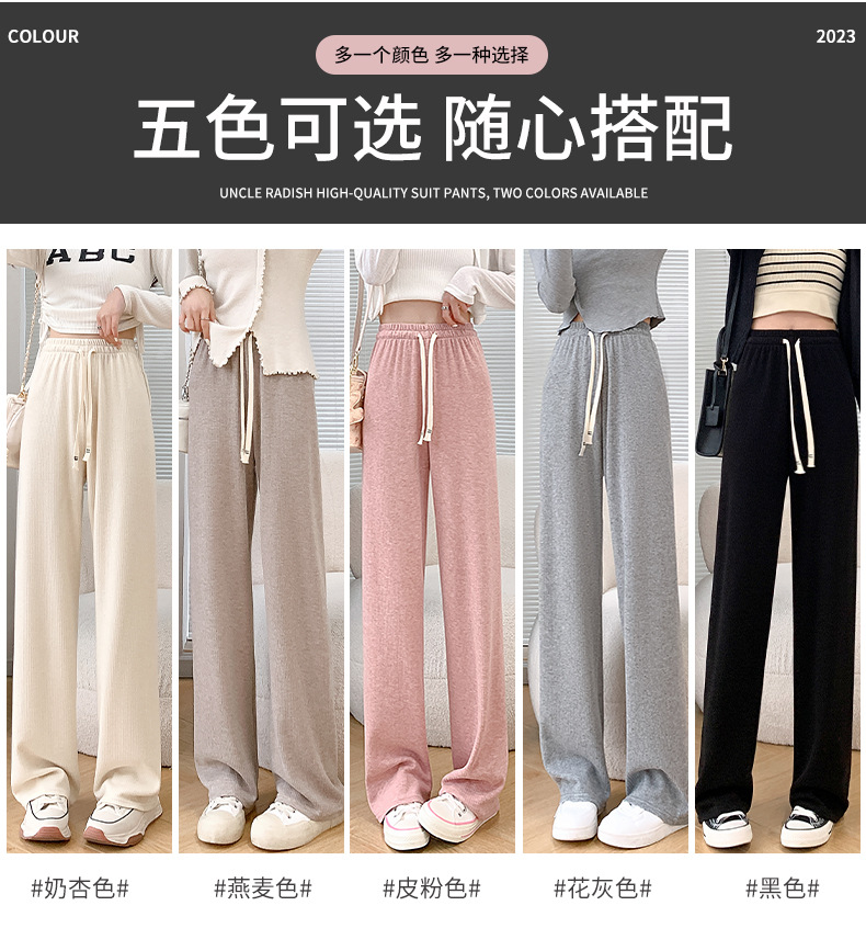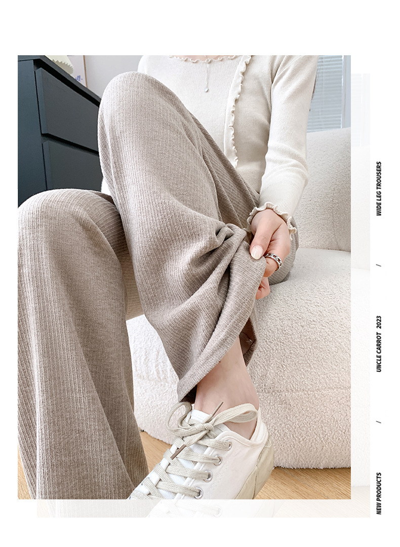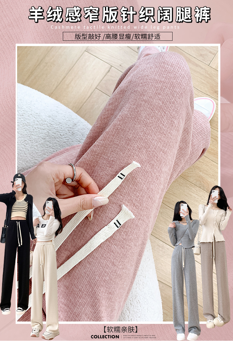 Uncle Radish Narrow wide-leg pants for women's Autumn/Winter 2023 new high-waisted straight-leg pants for women's clothing, pink cashmere pants for consignment