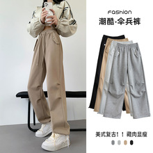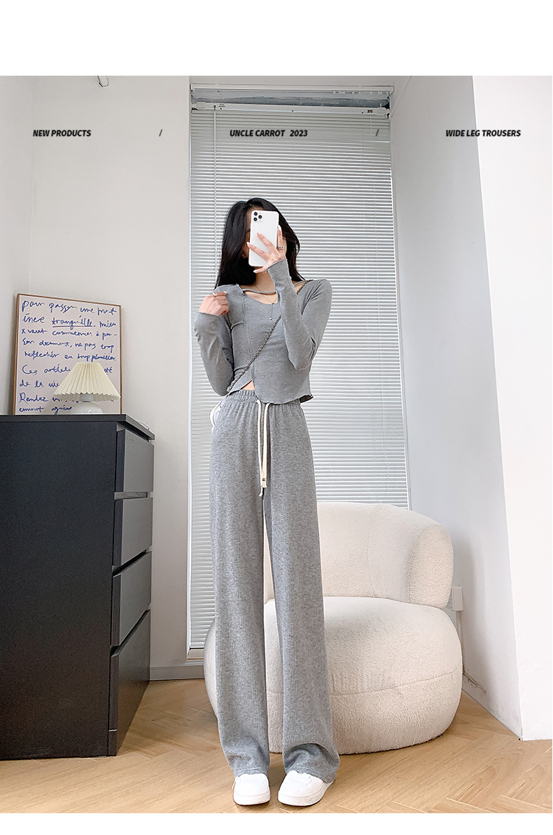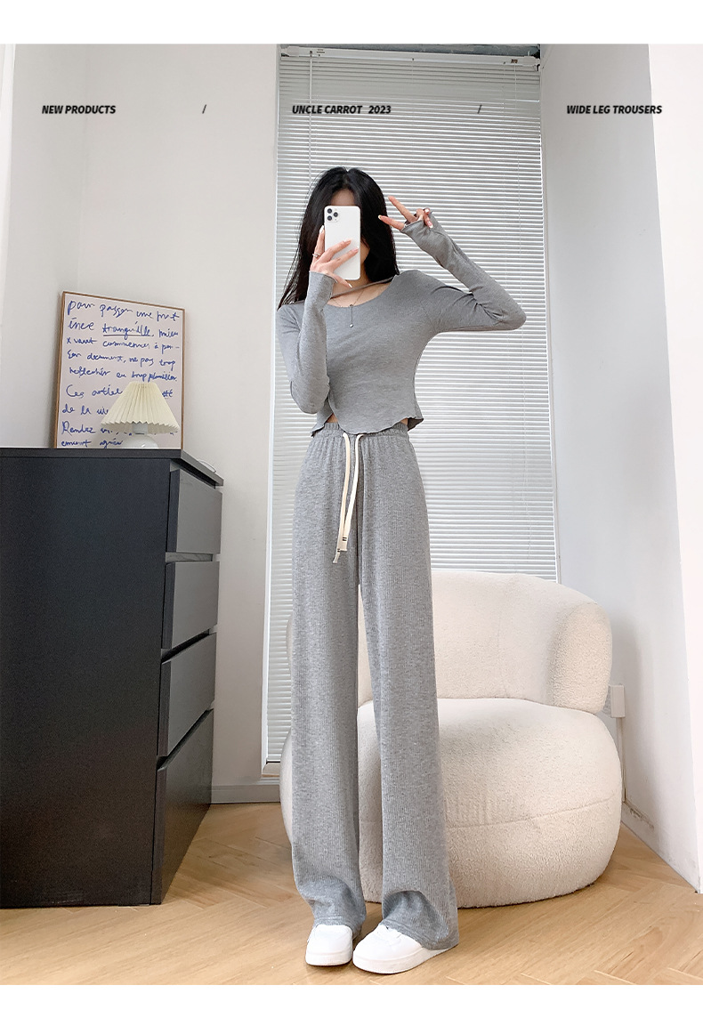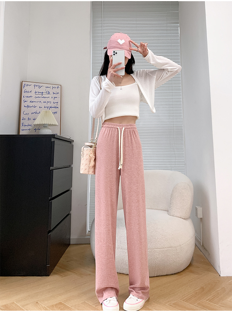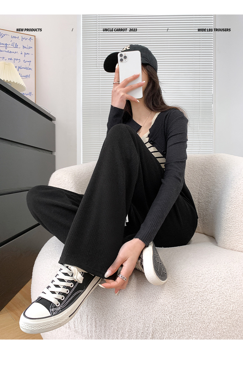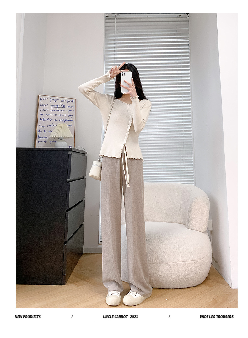 Uncle Radish Narrow wide-leg pants for women's Autumn/Winter 2023 new high-waisted straight-leg pants for women's clothing, pink cashmere pants for consignment