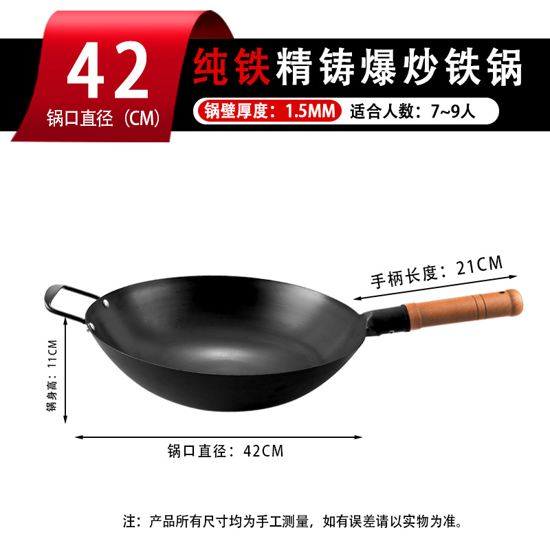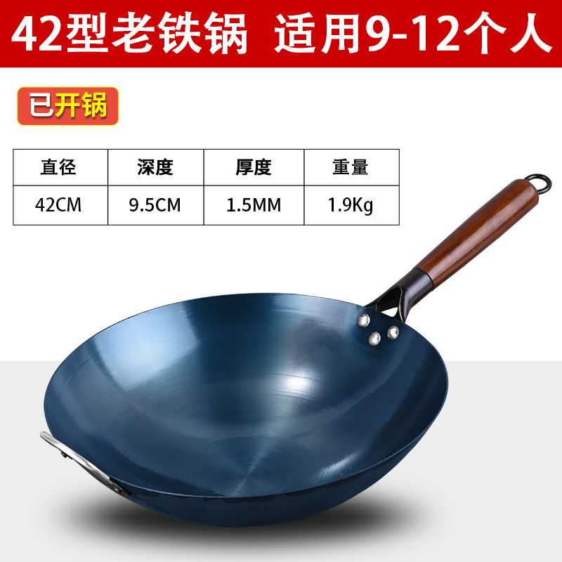 42cm [Round bottom without ears] 1.5mm thick wooden-handled iron pot [Hand-cooked