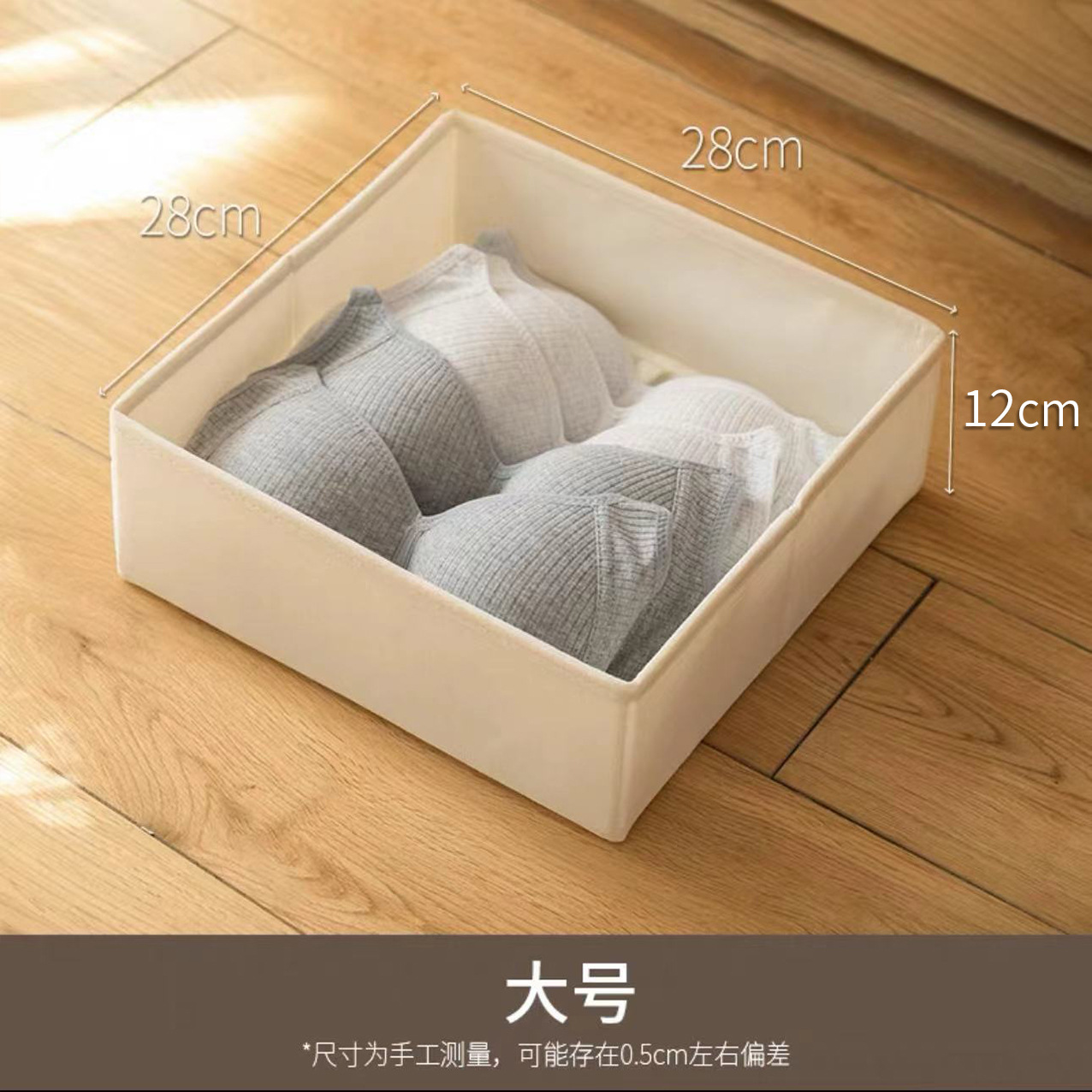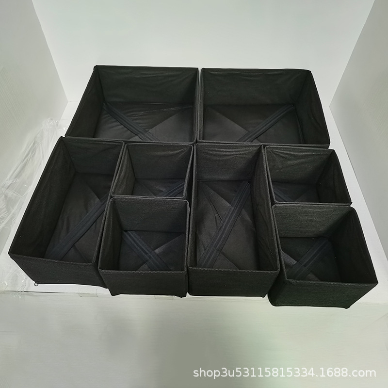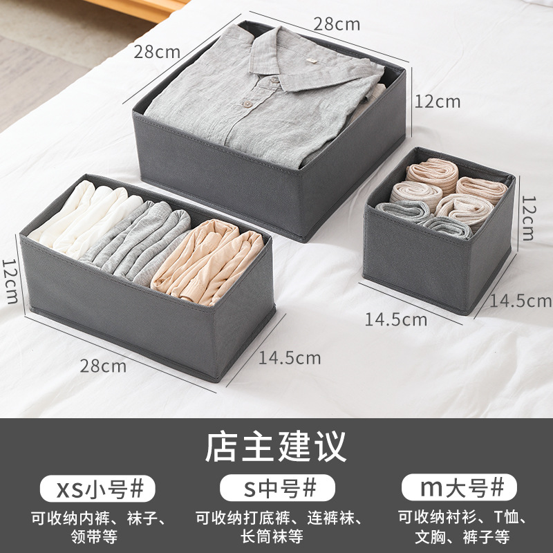 Uncovered grid sock storage box 3-piece set, underwear and underpants classified and organized storage box, bottom plate zipper storage box