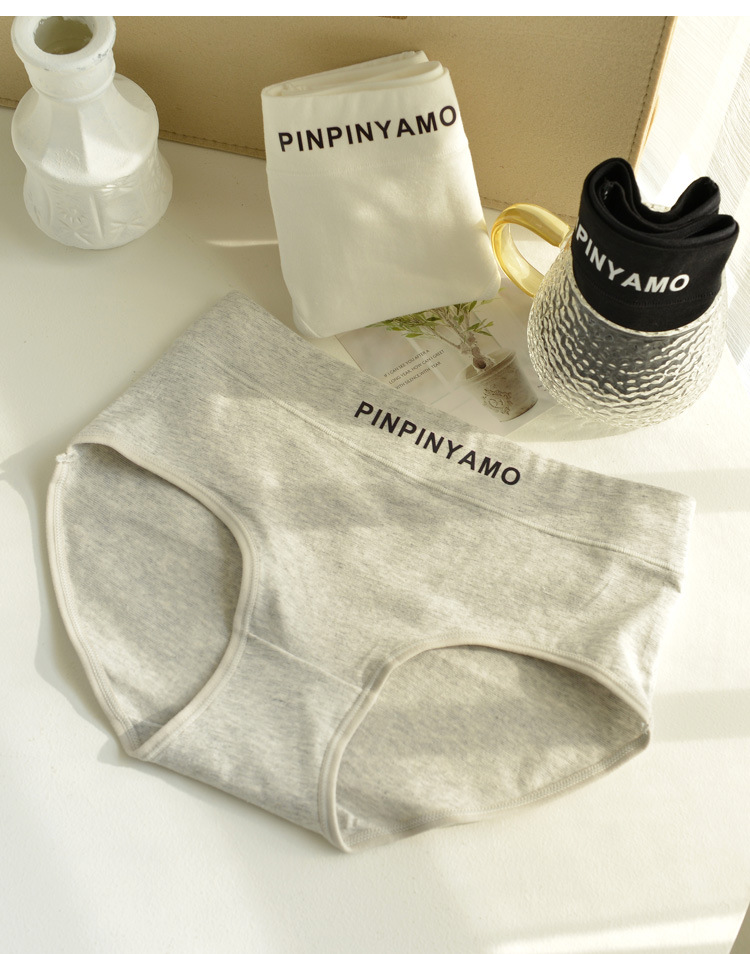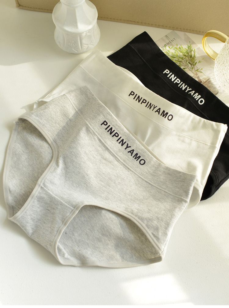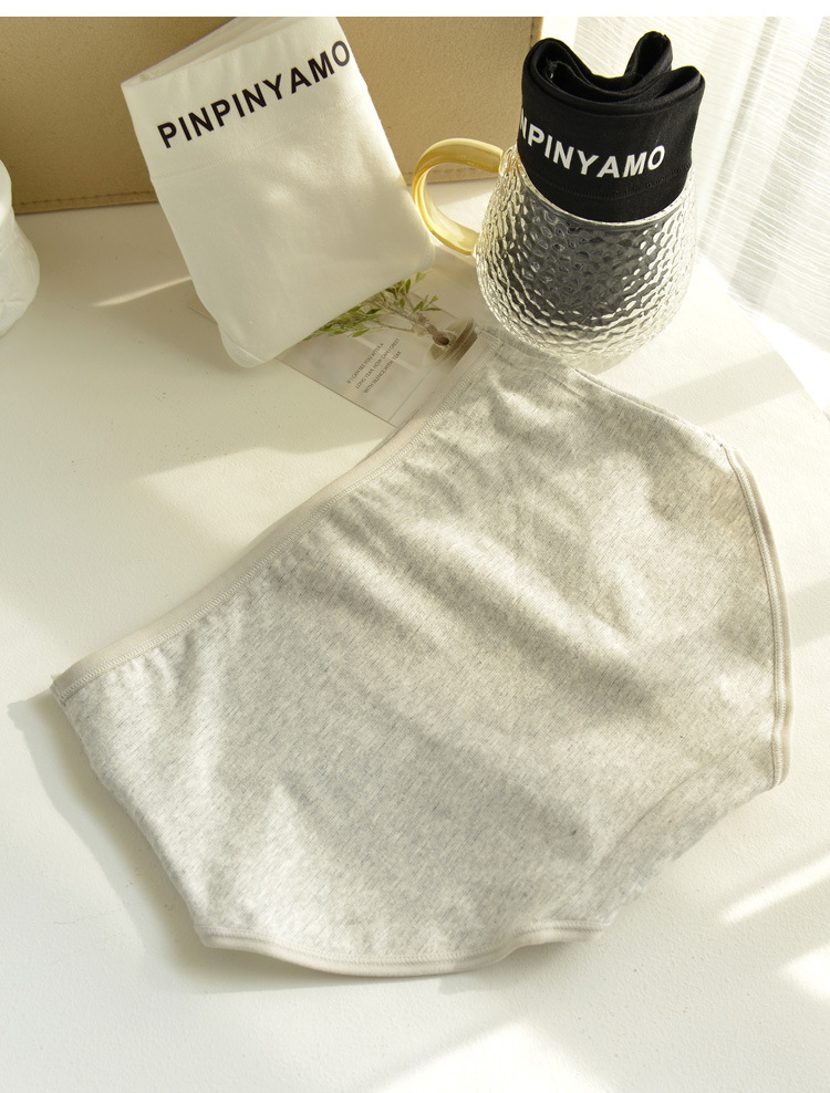 Underwear for women: Pure cotton mid-waist underwear for women, all-cotton antibacterial grade, sports girls, black, white and gray, women's triangle shorts