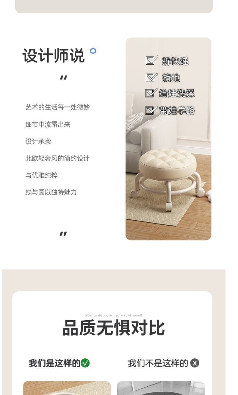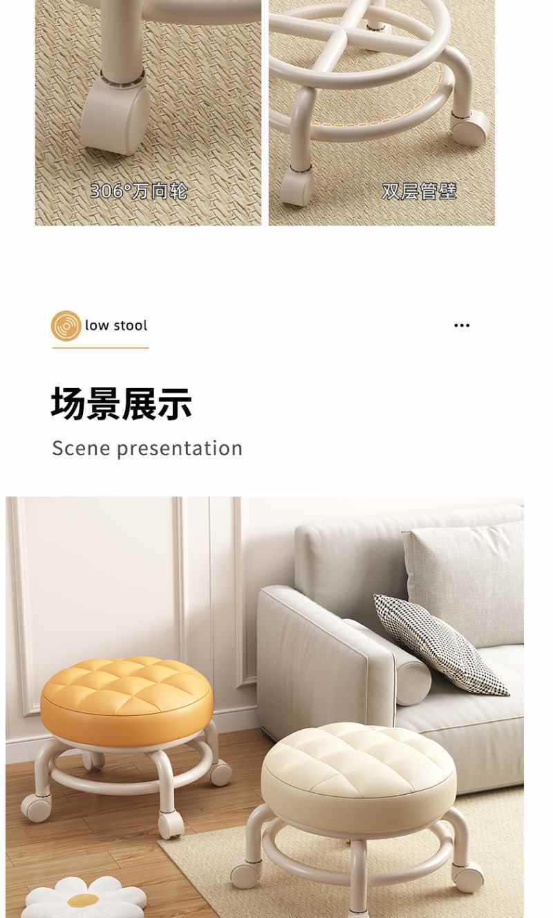 Universal wheel sliding wheel low stool, household shoe-changing small stool, mobile small chair for children, children's walking stool wholesale
