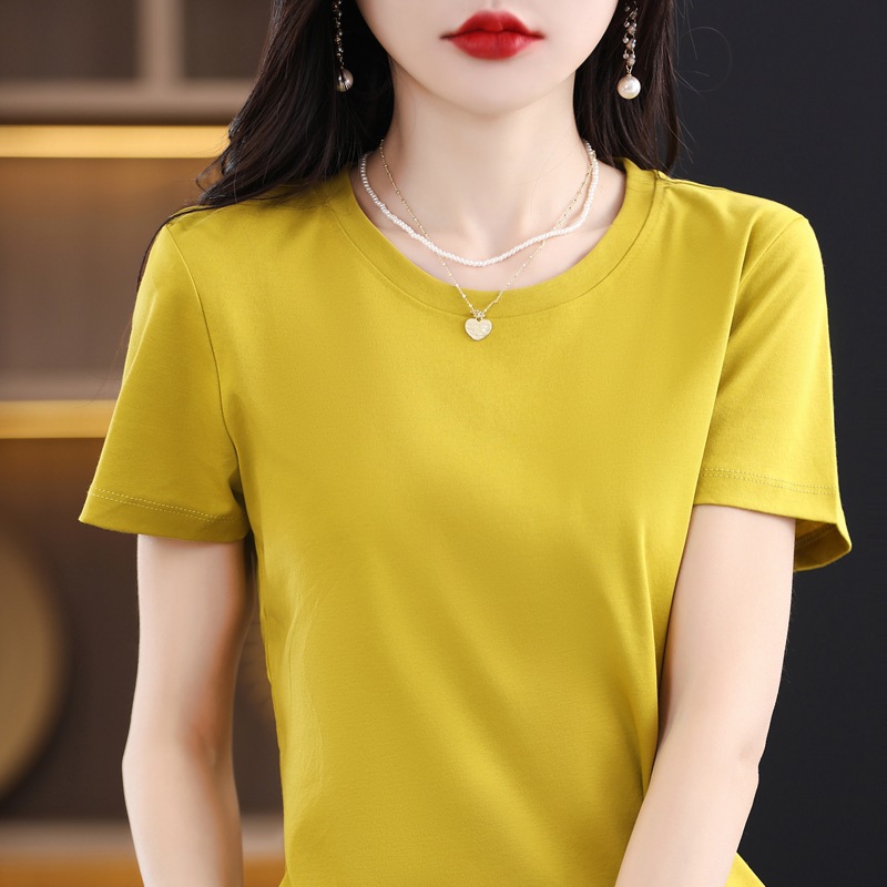 Upgrade to 80-count mercerized cotton short-sleeved women's summer wear, round V-neck loose basic pure cotton T-shirt and top for T-shirt delivery