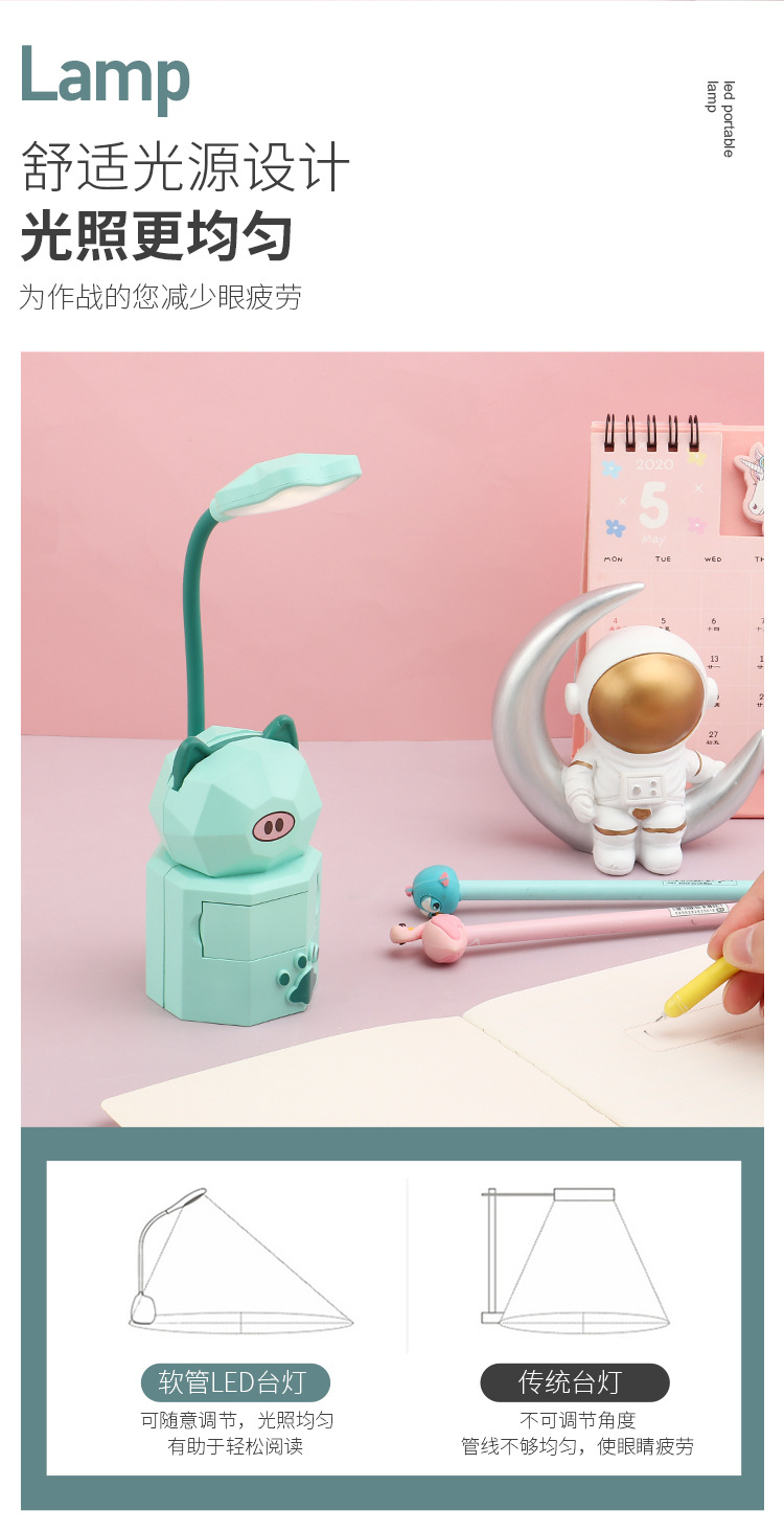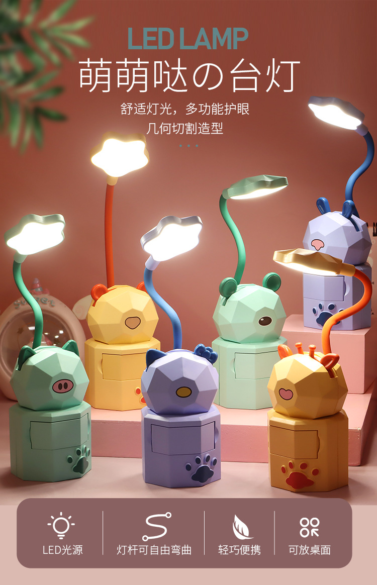 USB charging children's dormitory reading eye-protecting creative cartoon drawer storage LED desk lamp student small gifts