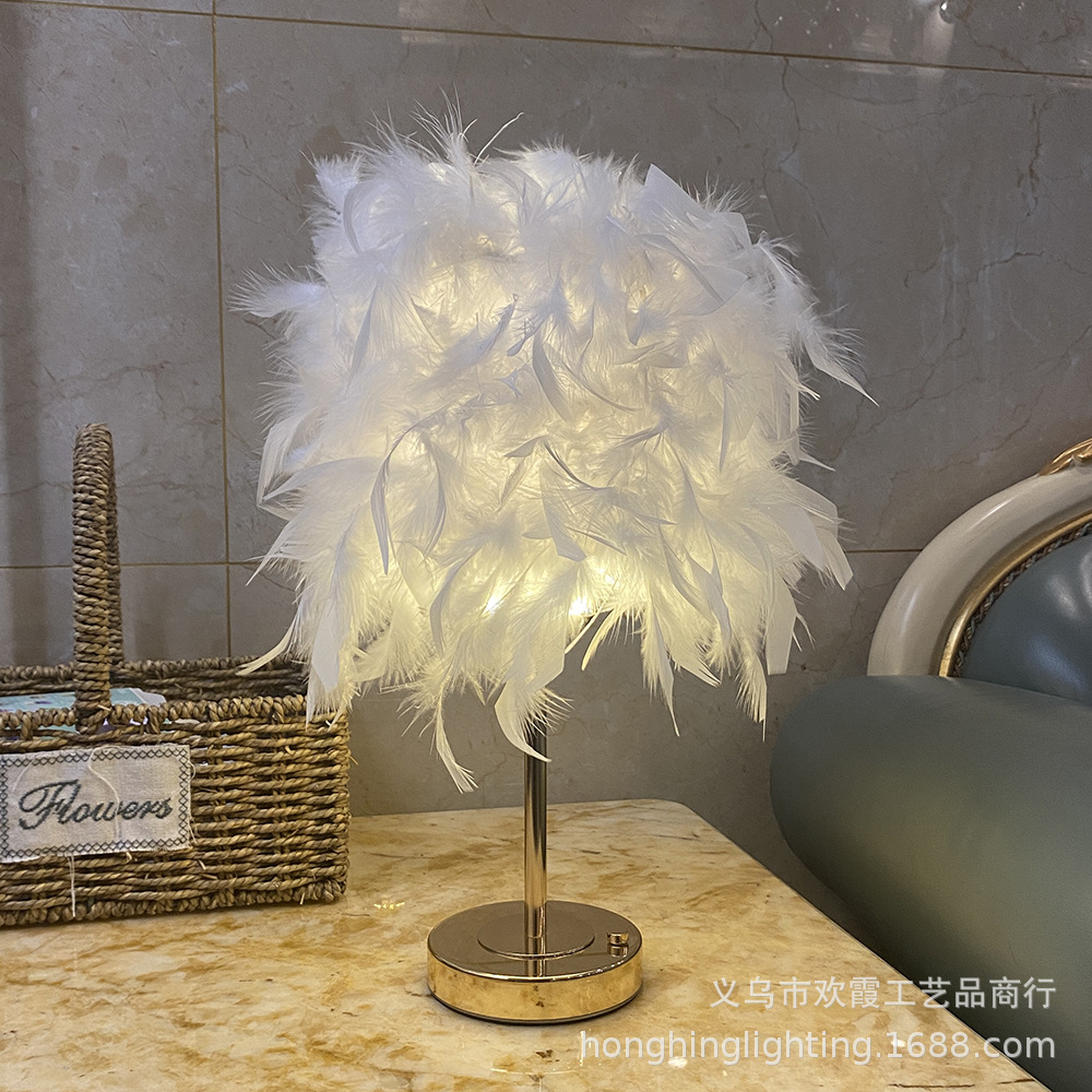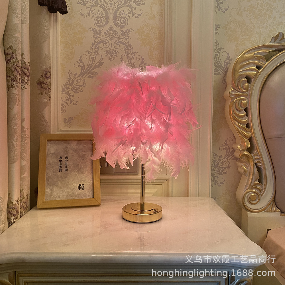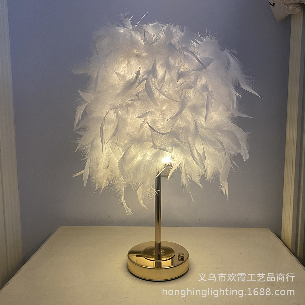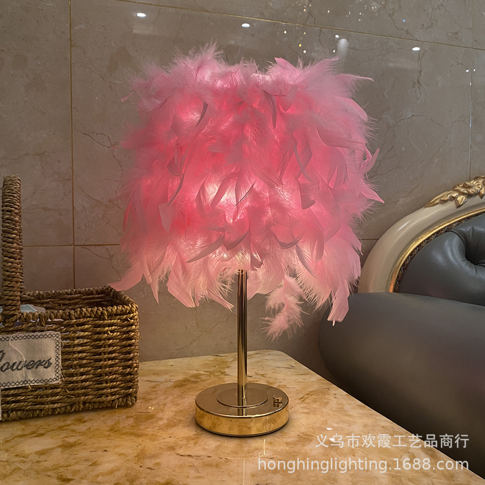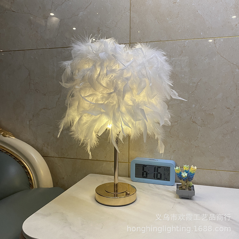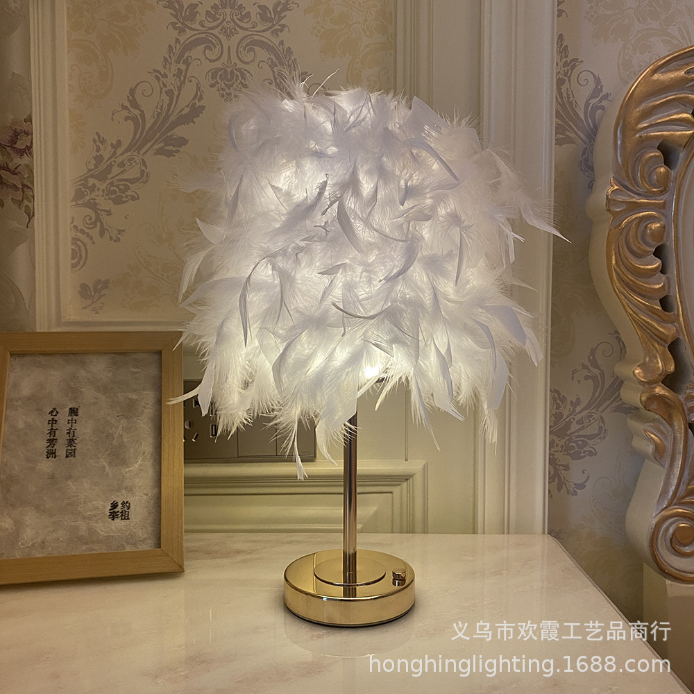 Source factory, product materials: The lampshade is handcrafted from high-quality natural white goose feathers, and the lamp body is made of ironwork electroplated with French gold. It features a light luxury style, creating a warm and romantic atmosphere. There are various colors of feathers to choose from. The regular inventory includes white, light pink, gray, wine red, sapphire blue, etc. Other colors can be customized. Please note the color when customizing.