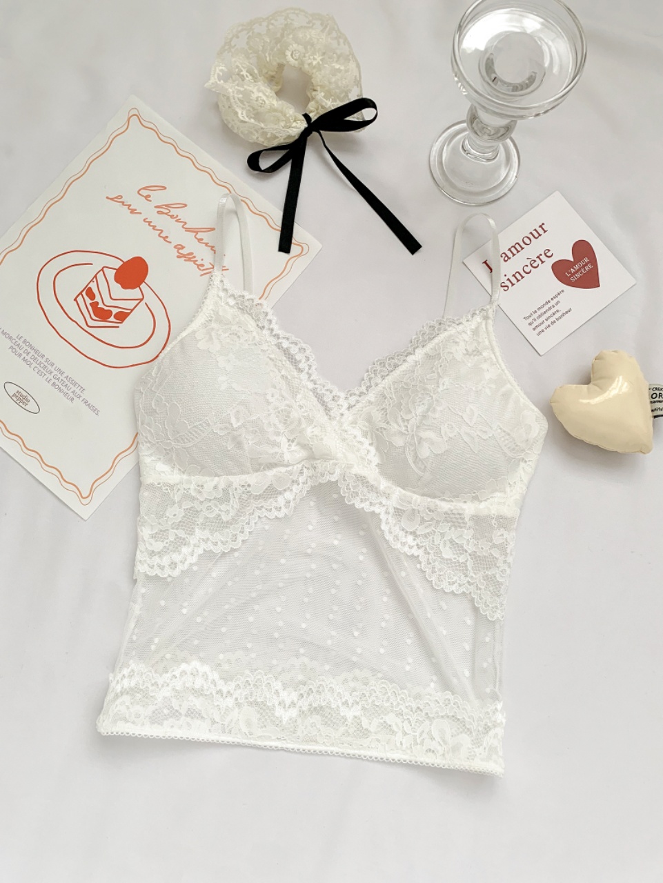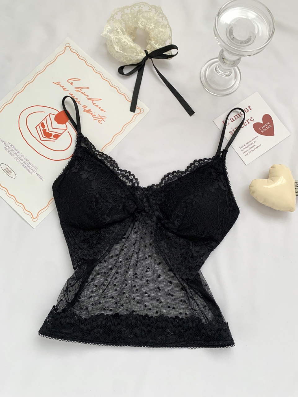 V-neck hot girl lace patchwork mesh halter top for summer, sexy and beautiful back top trend 2025 new style
