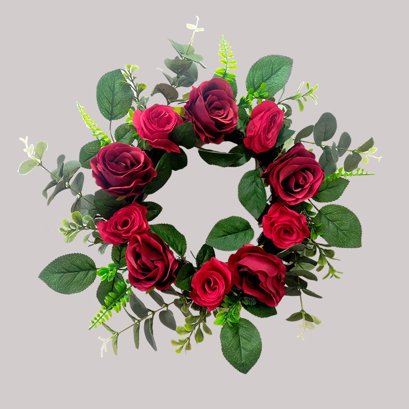 Valentine's Day garden-shaped wreath wall decoration, rose flower art, entrance hall, bedroom door hanging item, clothing store rose hanging decoration