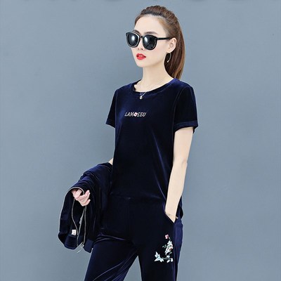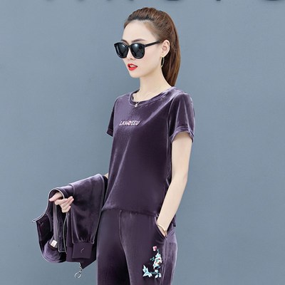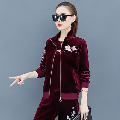 Velvet casual sportswear set for women, fashionable and loose 2020 spring collection, new Korean-style plus-size sweatshirt three-piece set