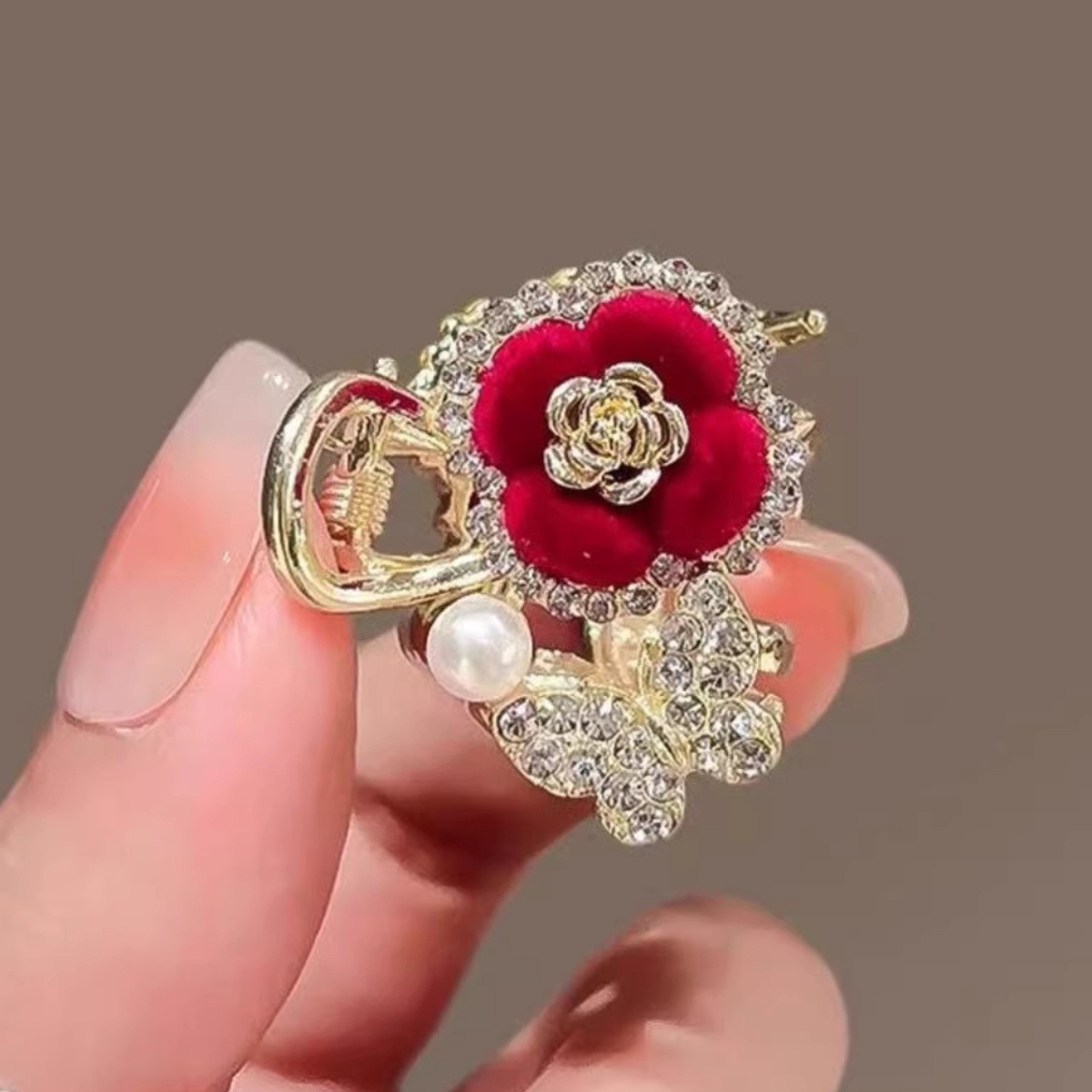Velvet red flower grappling clips, small princess hair clips, broken hair clips, sweet and cute metal bangs clips, side clips