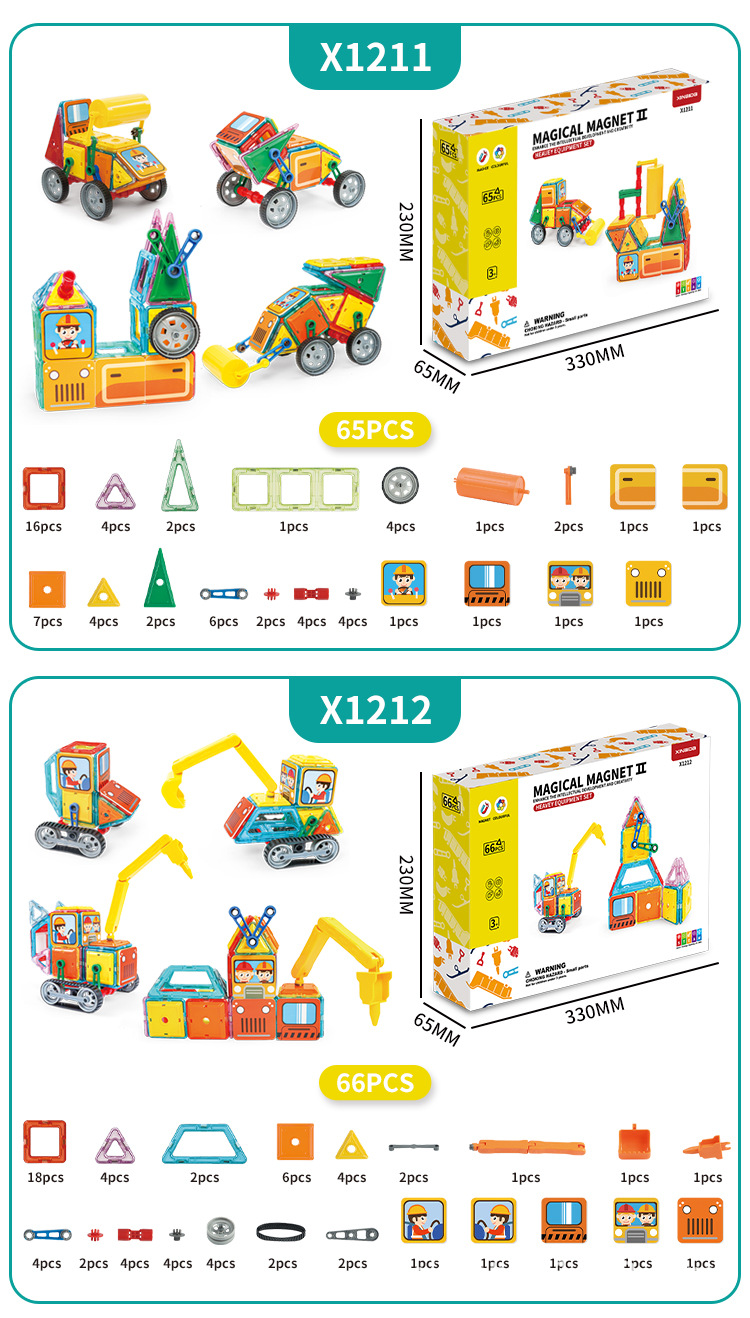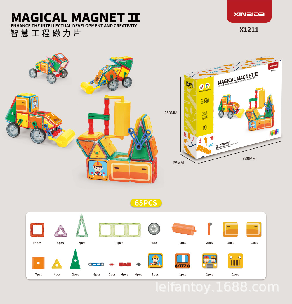 Versatile magnetic sheet disassembly and assembly engineering vehicle, children's DIY assembly excavator, bulldozer, toy building blocks, versatile machine
