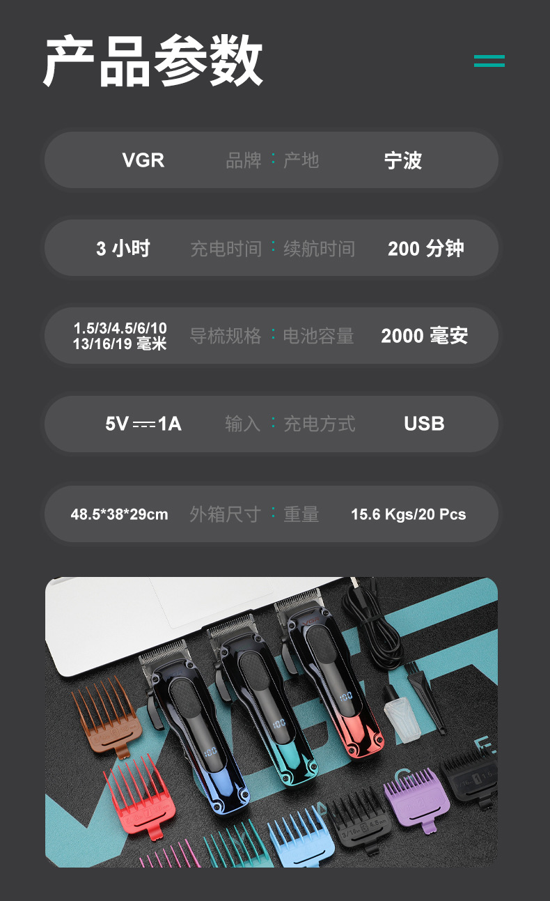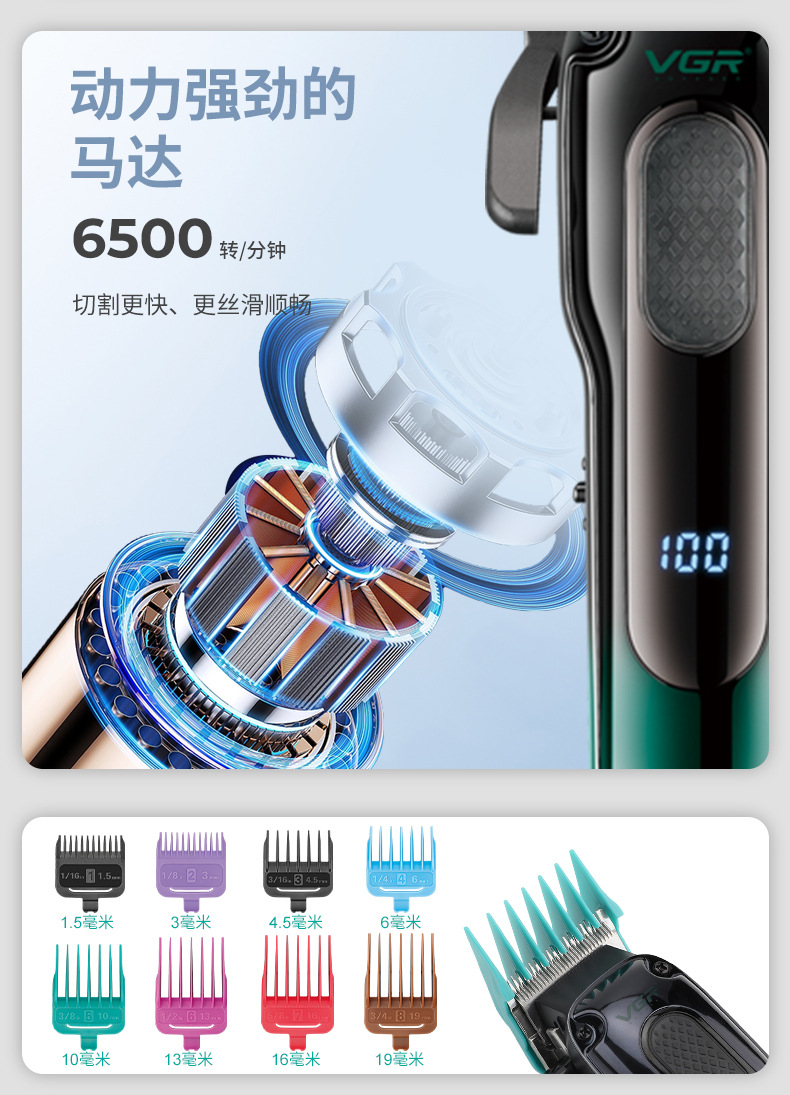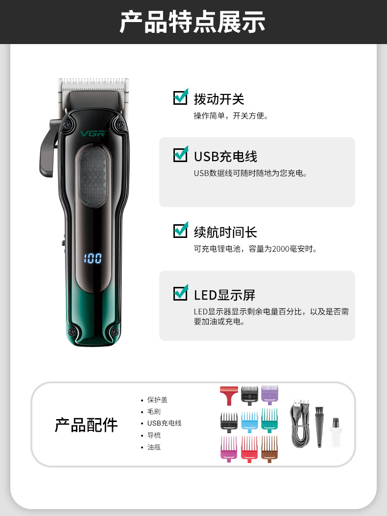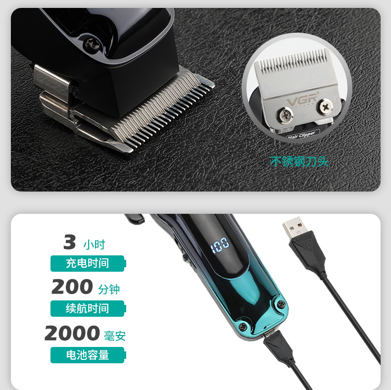 VGR013 Cross-border new electric hair clipper, professional hair salon men's oil-tipped electric clipper, LCD digital display hair clipper
