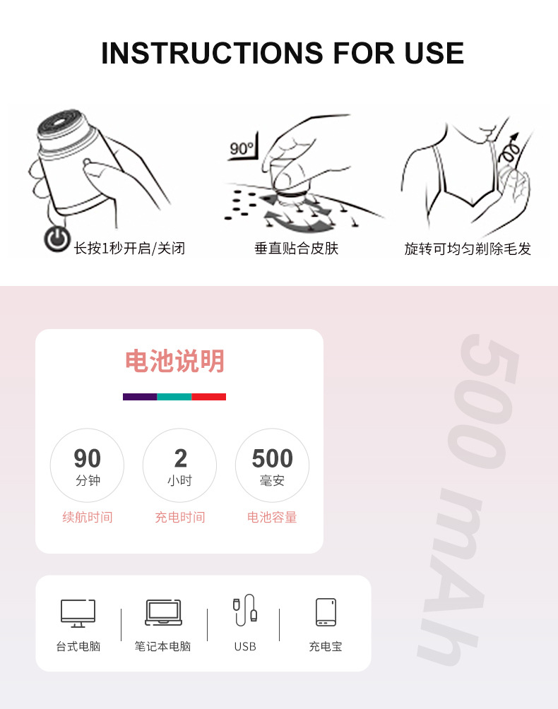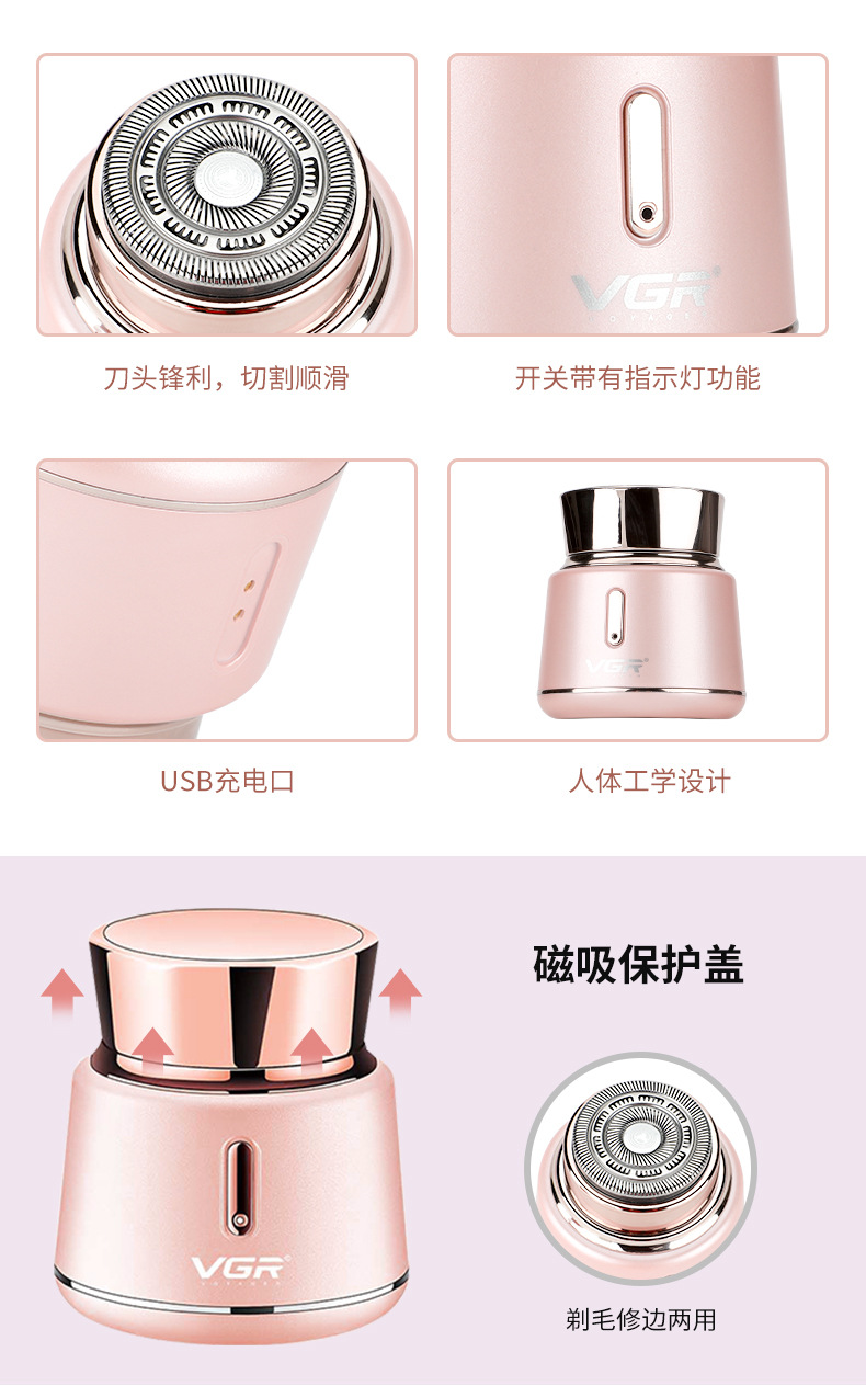 VGR737 Electric hair Remover, waterproof women's private full-body trimmer, compact and portable travel USB hair remover