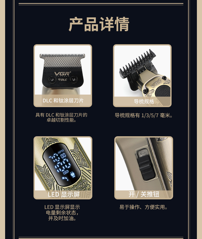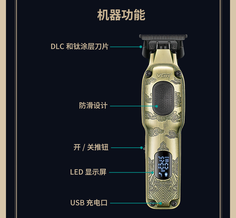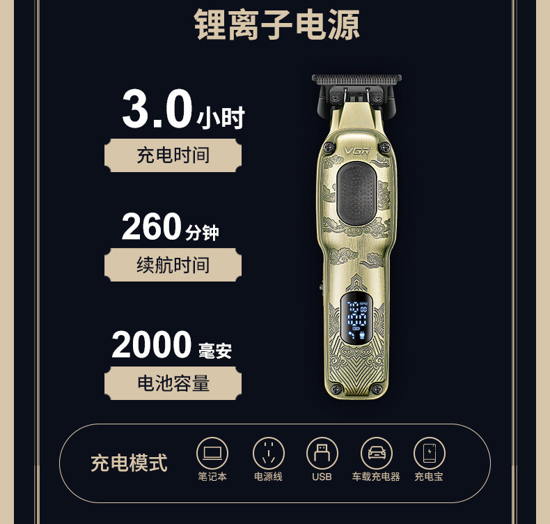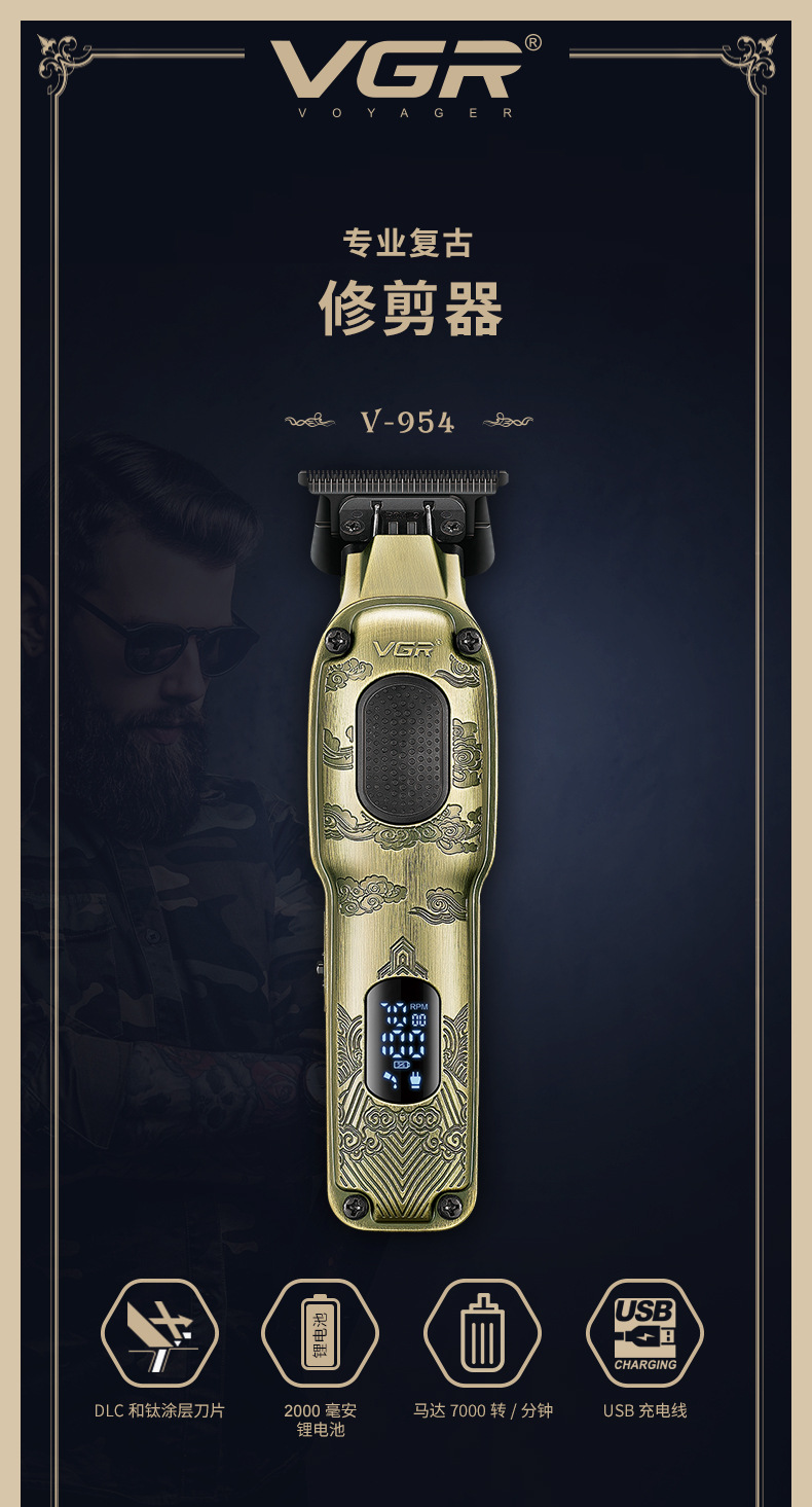 VGR954 Cross-border digital display hair Clipper, oil-tipped clipper, professional hair salon rechargeable men's metal electric clipper