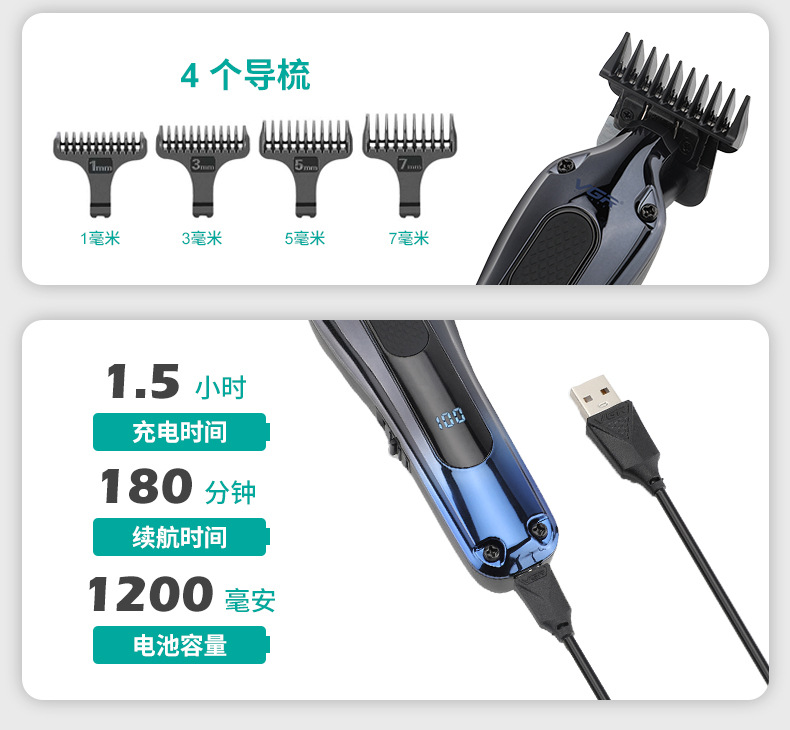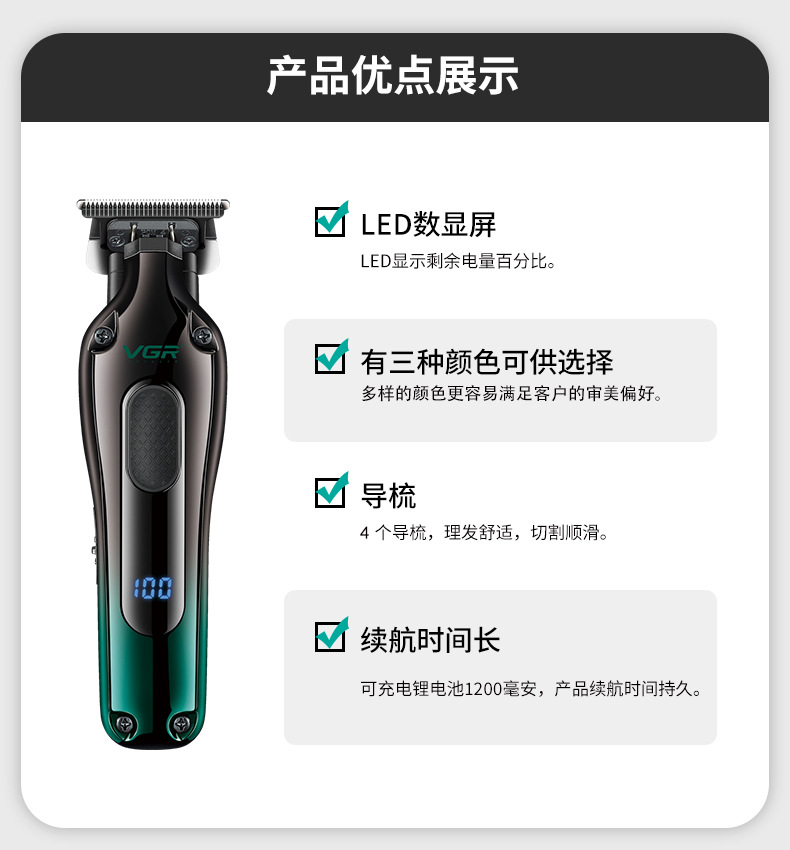 VGR998 Cross-border new electric hair clipper for men's home use, oil head, scratch clipper, USB charging digital display clipper