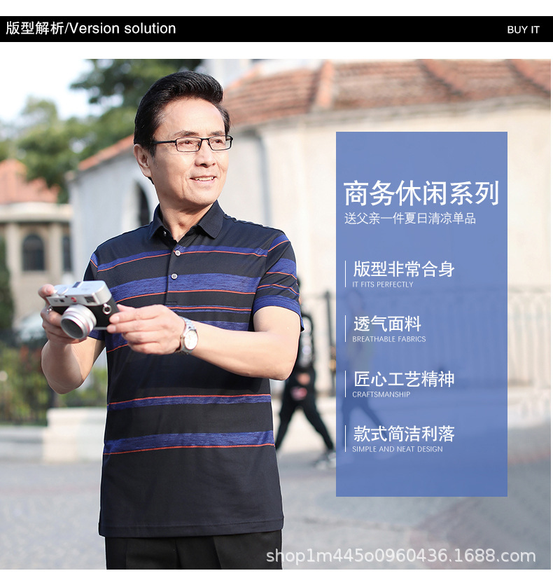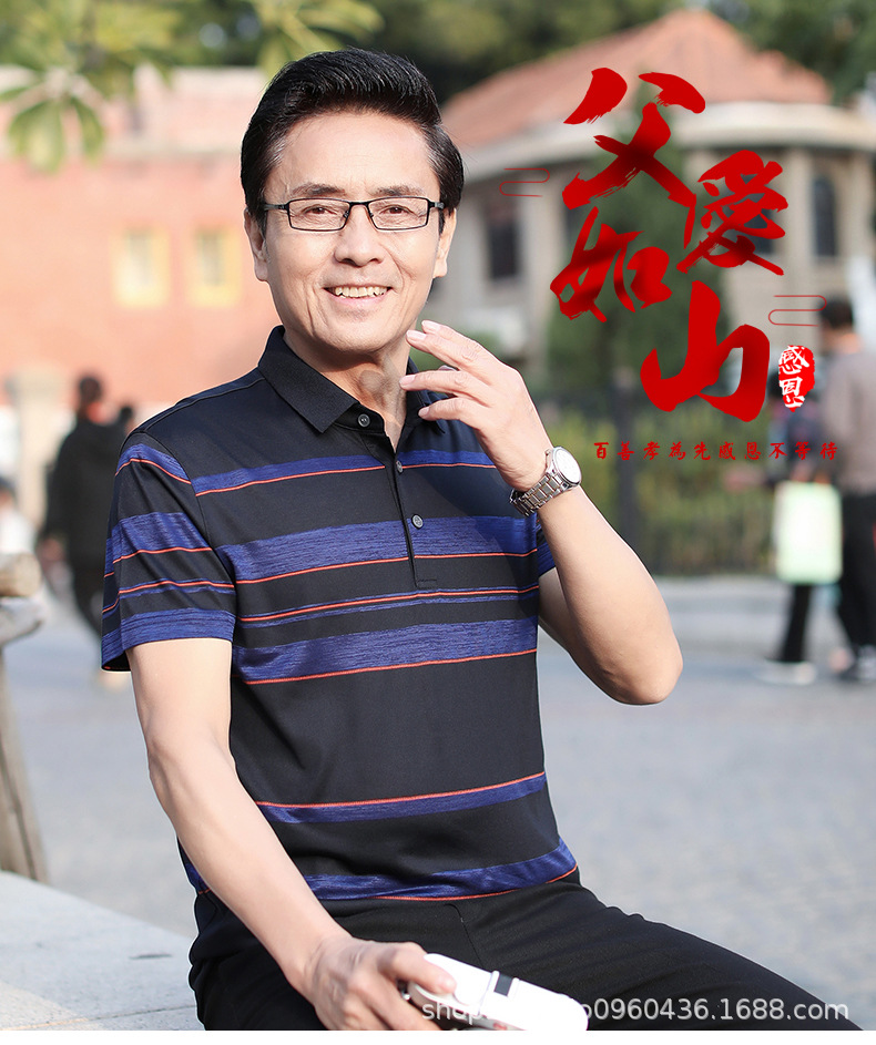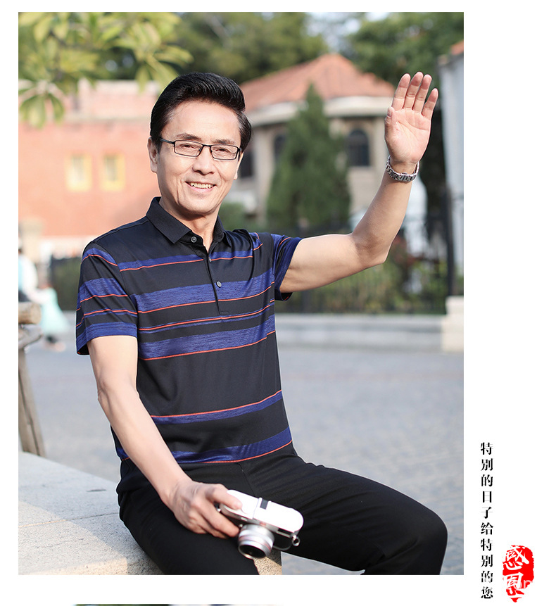 Vintage car, Father's Day, middle-aged men's short-sleeved T-shirt, summer dad's wear 2022, men's top for middle-aged and elderly people pol