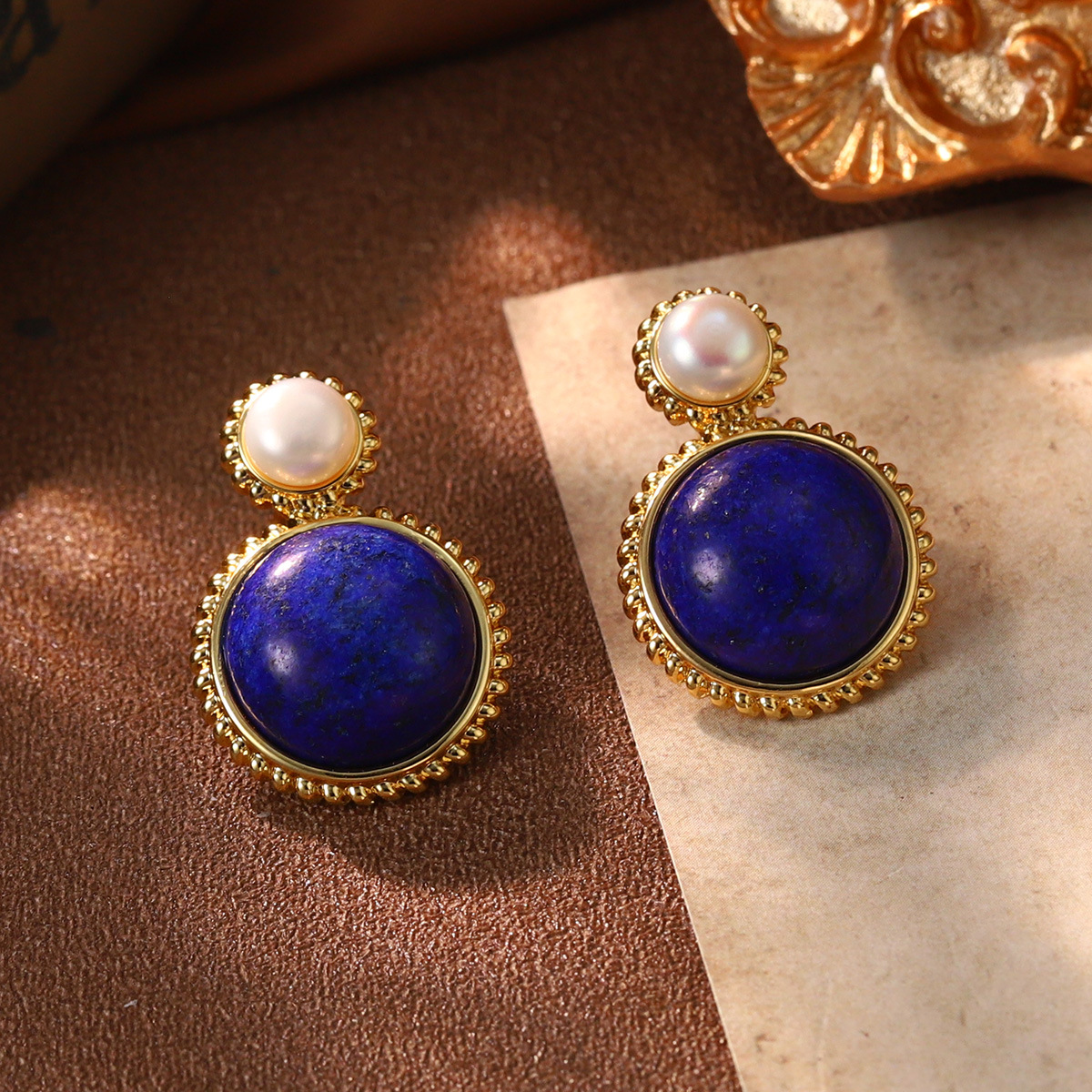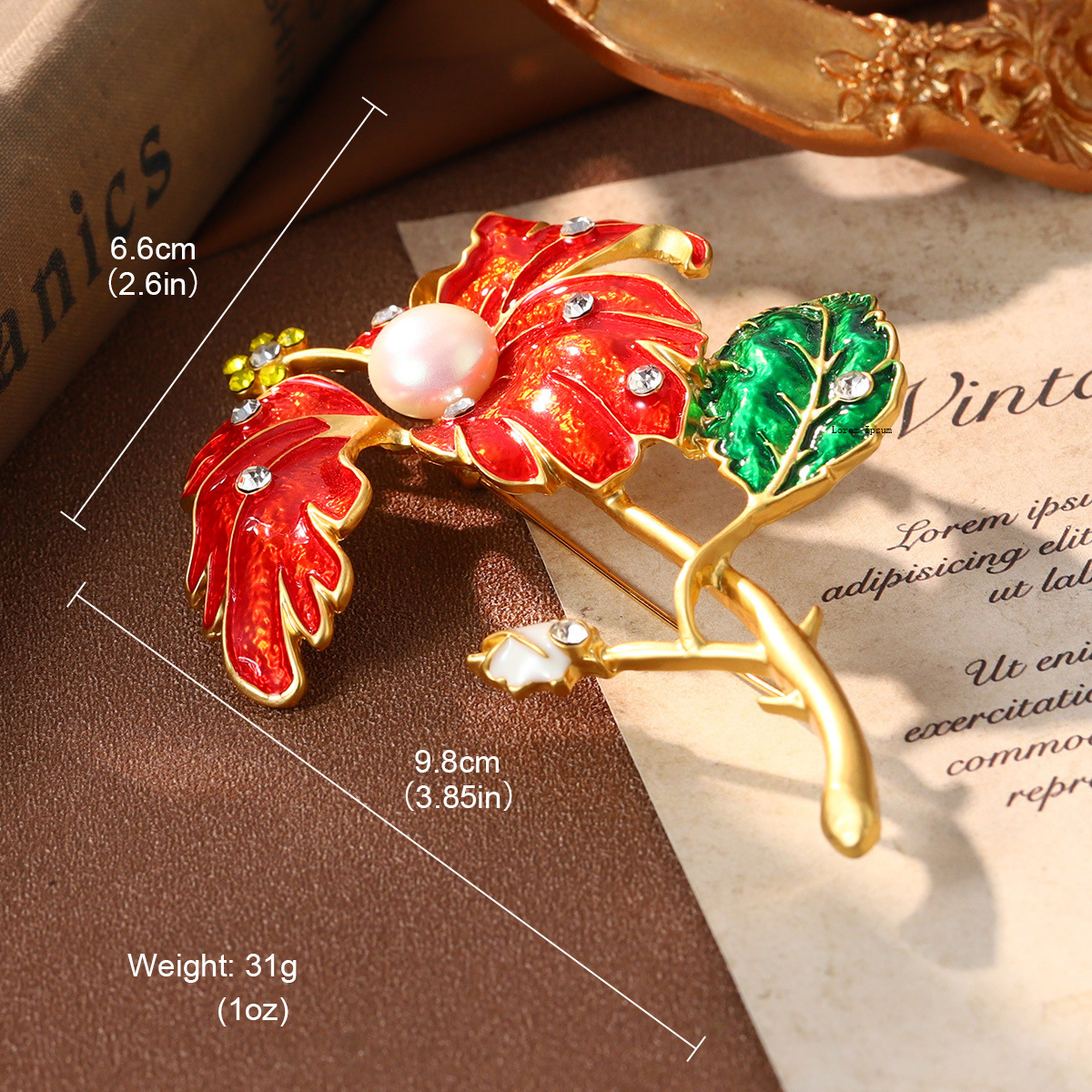 vintage flower pearl vintage court-style earrings set with zircon French fashion brooch and color-preserving silver needle