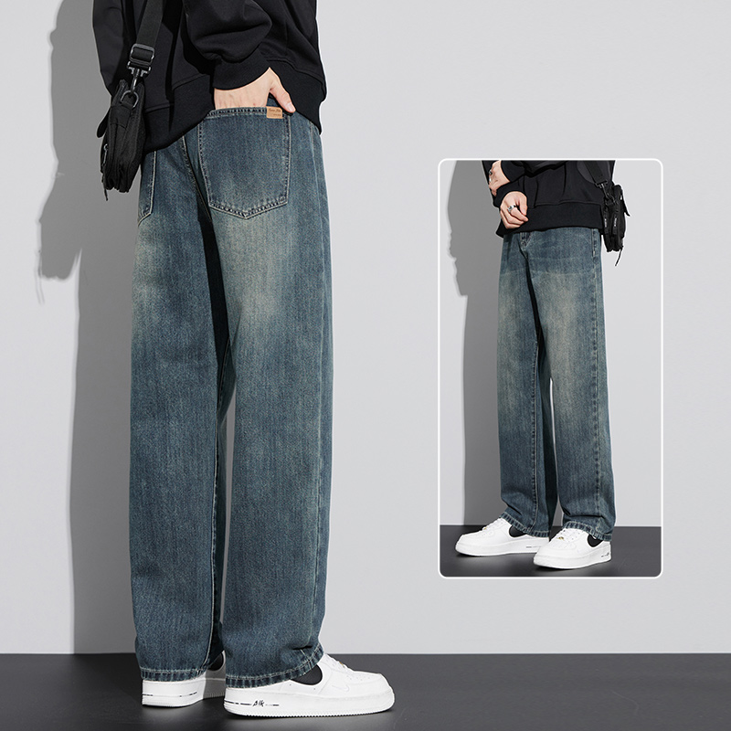 Vintage jeans for men, loose, straight, wide-leg American streetwear brand High Street 2025 new spring regular long pants