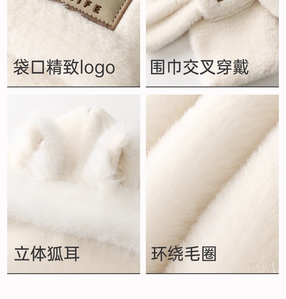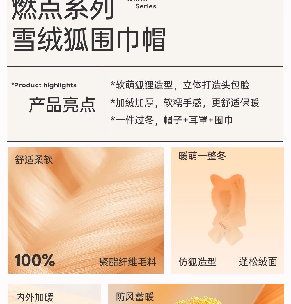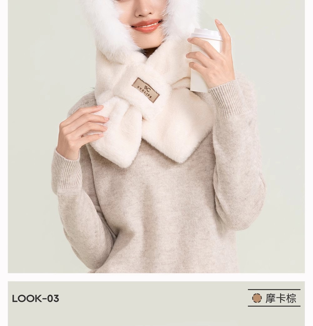 VVC Snow fleece fox warm hat, cute scarf, hat integrated warm scarf, women's autumn and winter thickened fleece, ear protection, trendy