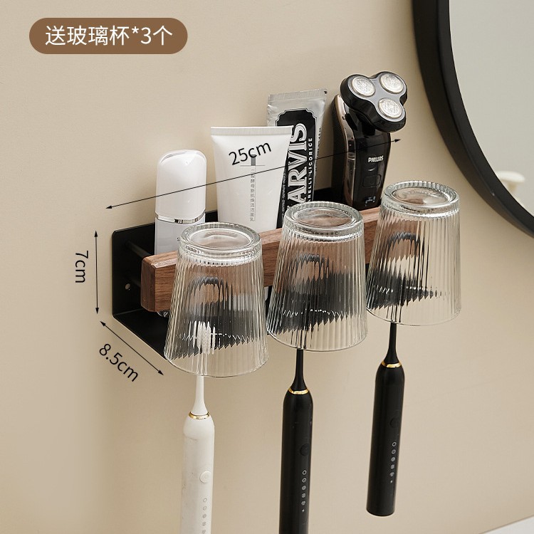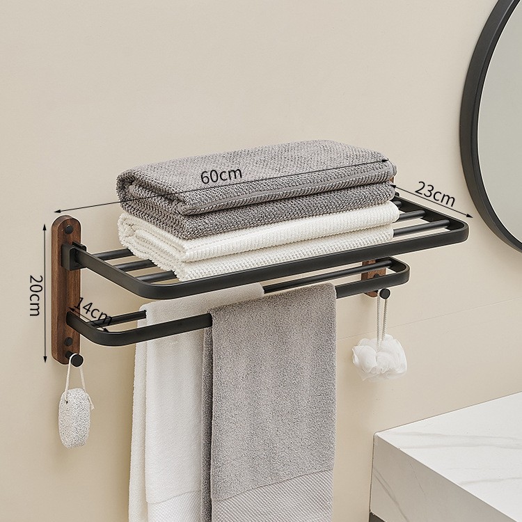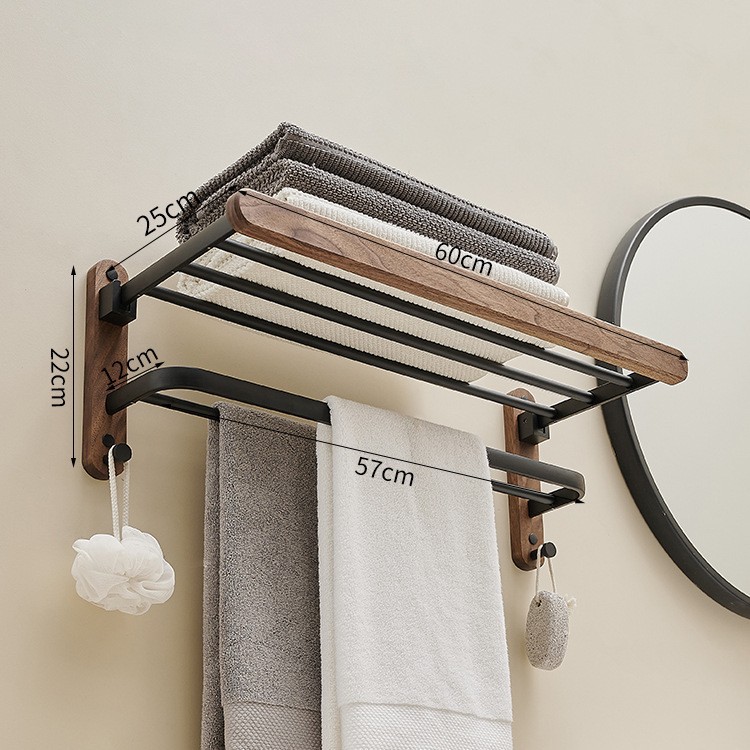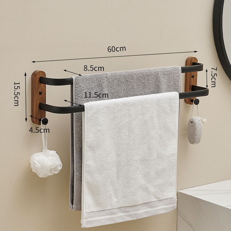 Walnut wood black wall-mounted towel rack set, bathroom bath towel rack, bathroom towel pole, storage rack, hardware hangers