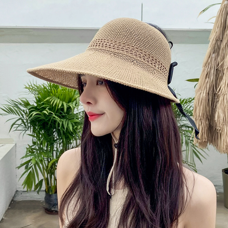 Wavy edge hollow top hat for women, summer outdoor sun protection hat, beach sun hat for outings, curly wide-brimmed straw hat