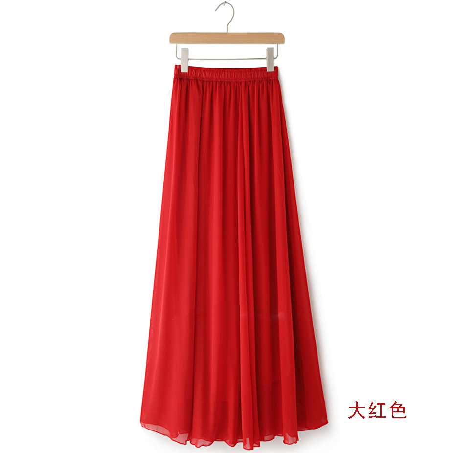 We are the agent for fashionable, bright red half-length skirts for summer and spring. These high-waisted, slimming chiffon half-length skirts are mid-length beach styles