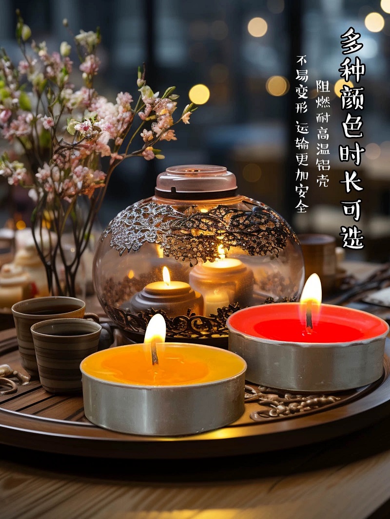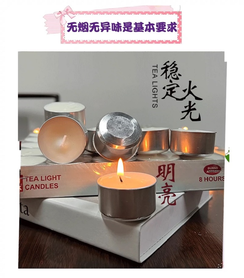 We have smokeless tea wax in stock. It can be heated and kept warm for 4 to 8 hours. It can be used to make tea. It is a scented candle. It is suitable for Valentine's Day, Mother's Day, Halloween, as a souvenir candle. There are also scented candles, European-style short candles, birthday candles, essential oil candles, and soy wax