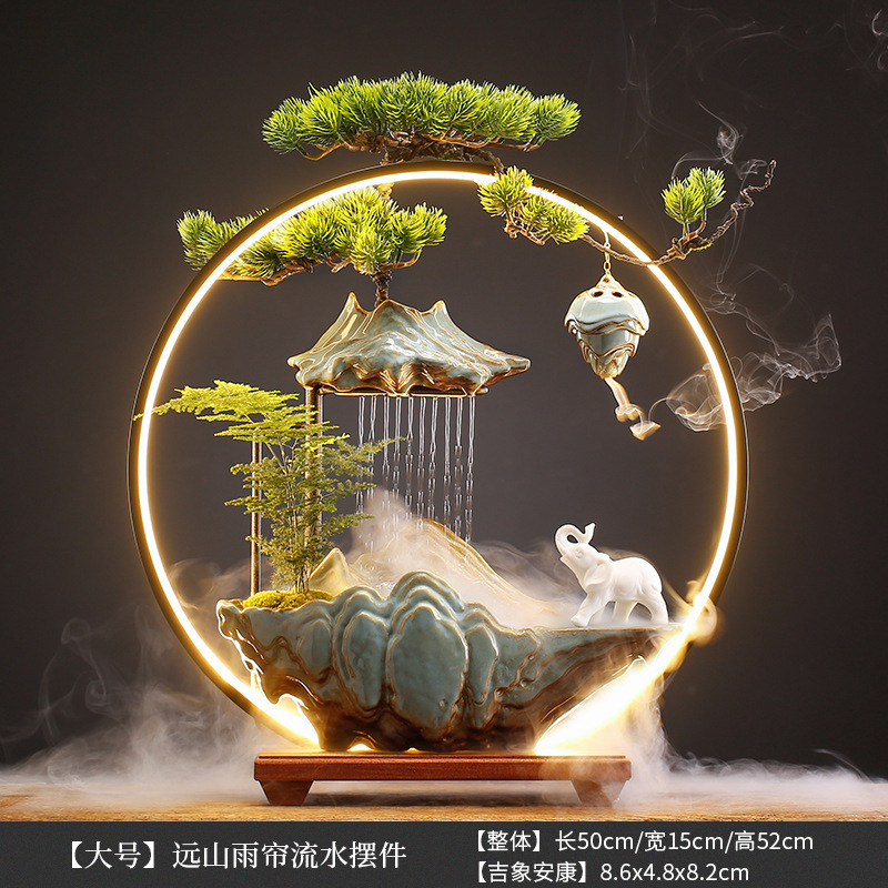 【 Large Size 】 Distant Mountain Rain Curtain Flowing Water Ornament - (Auspicious Image and Good Fortune) (Gift: Nebulizer + Asparagus Fern + Reverse Flow Incense)