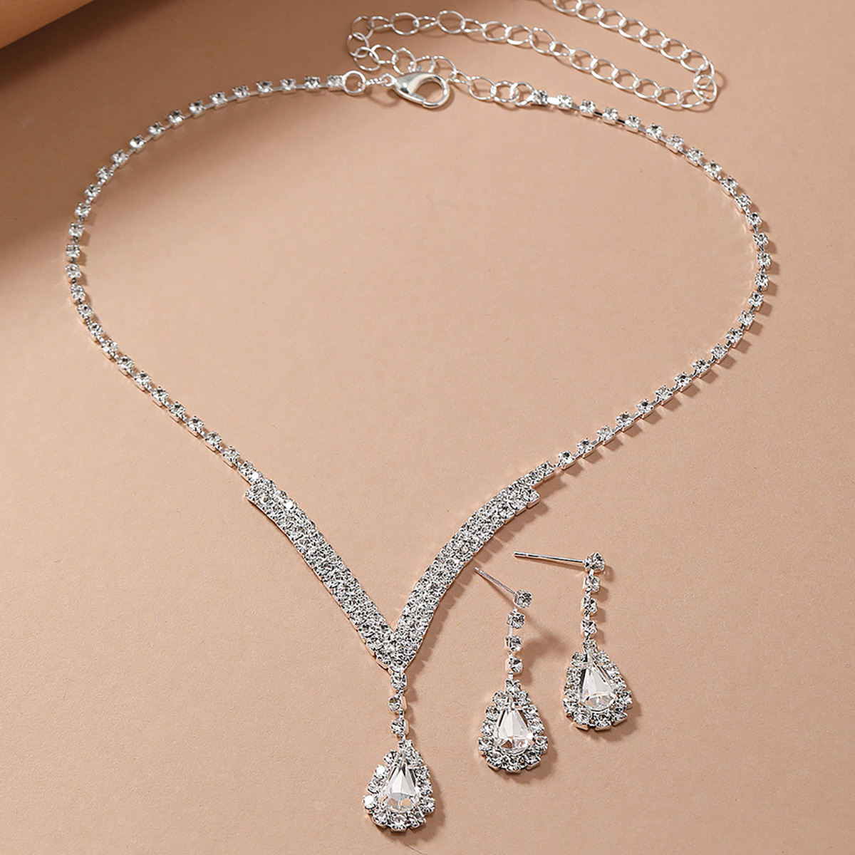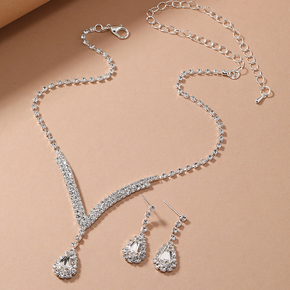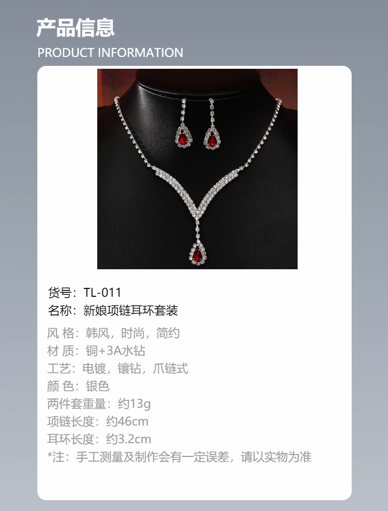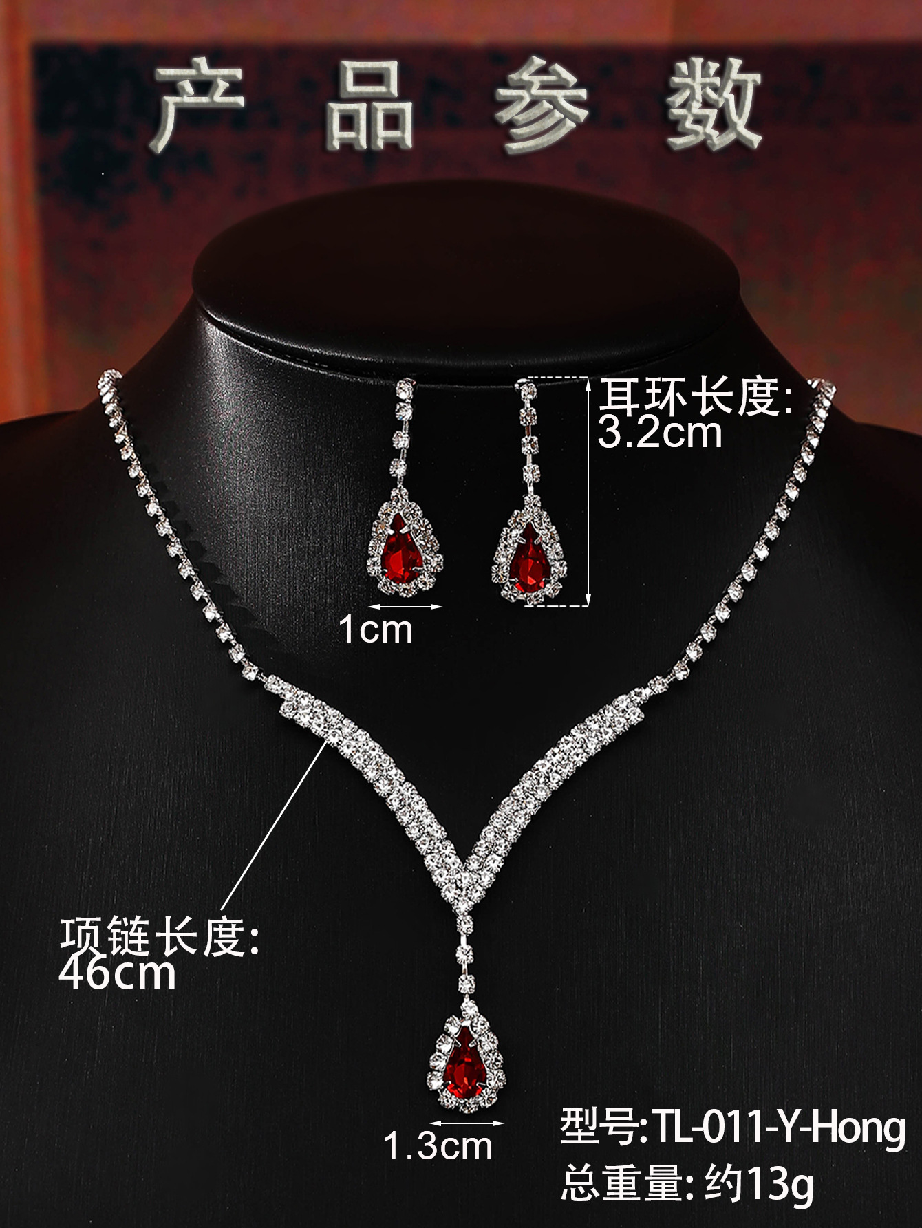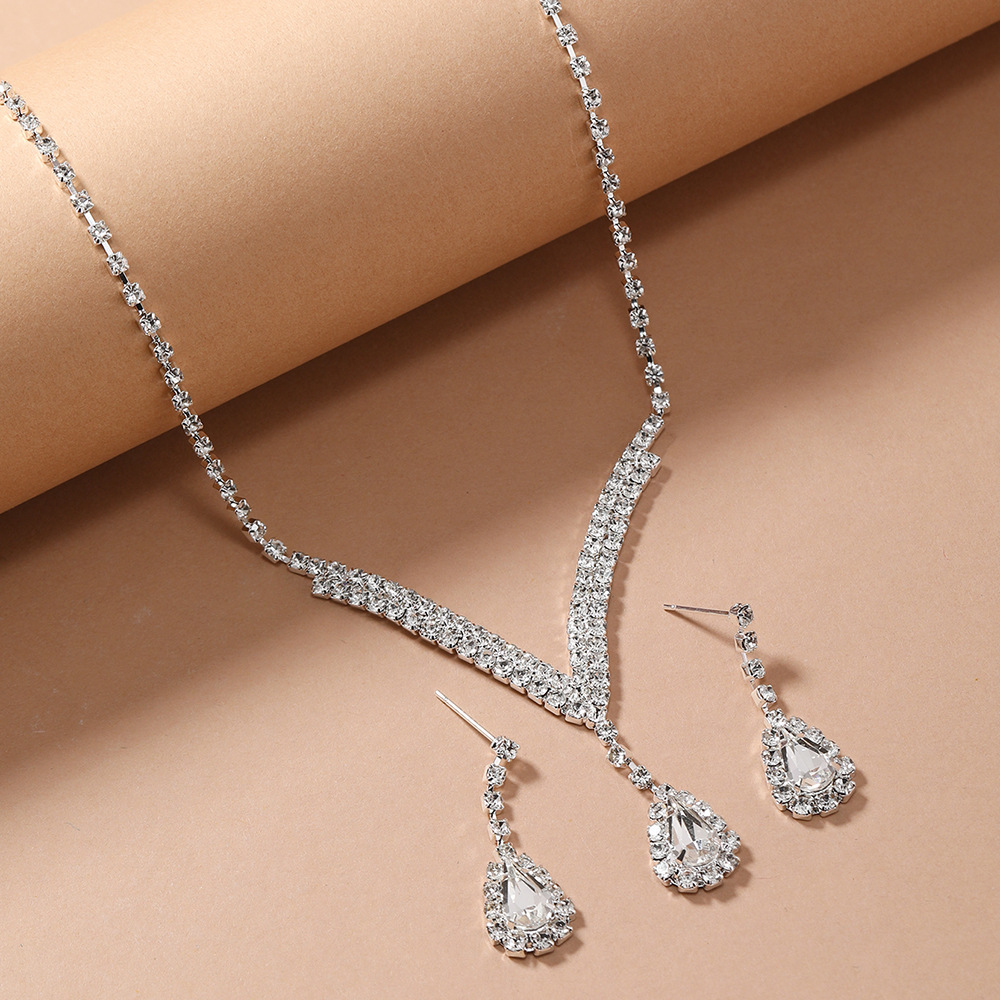 Wedding queue bride's accessories, ladies' decorations, fashionable claw chain, dazzling studded with diamonds, banquet necklace, earrings, two-piece set