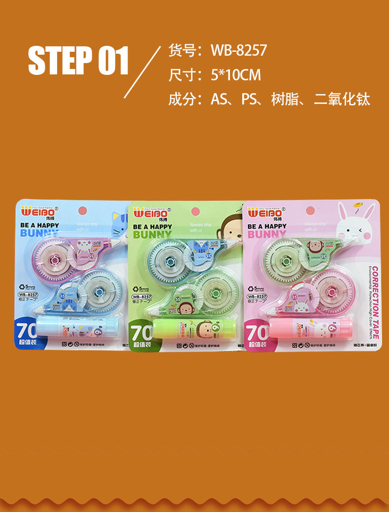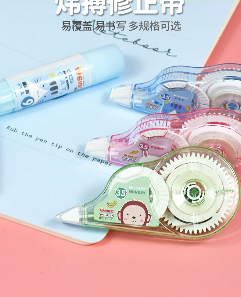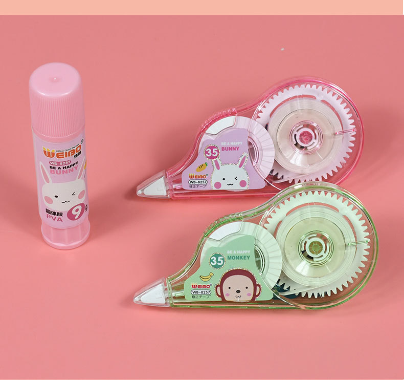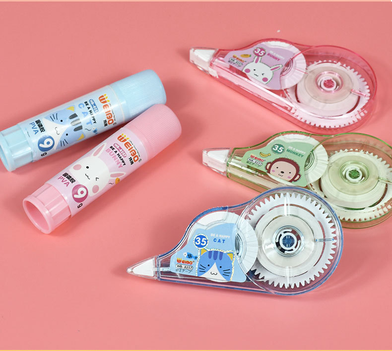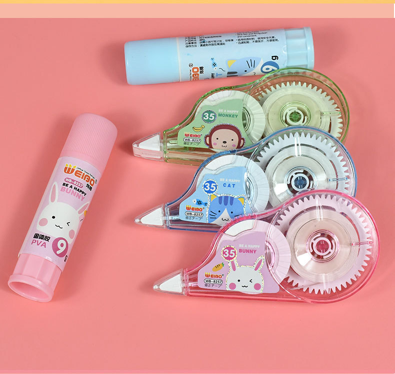 Weibo's new type of correction tape, cute and fresh solid adhesive combination set, for students and children's handmade use, factory wholesale