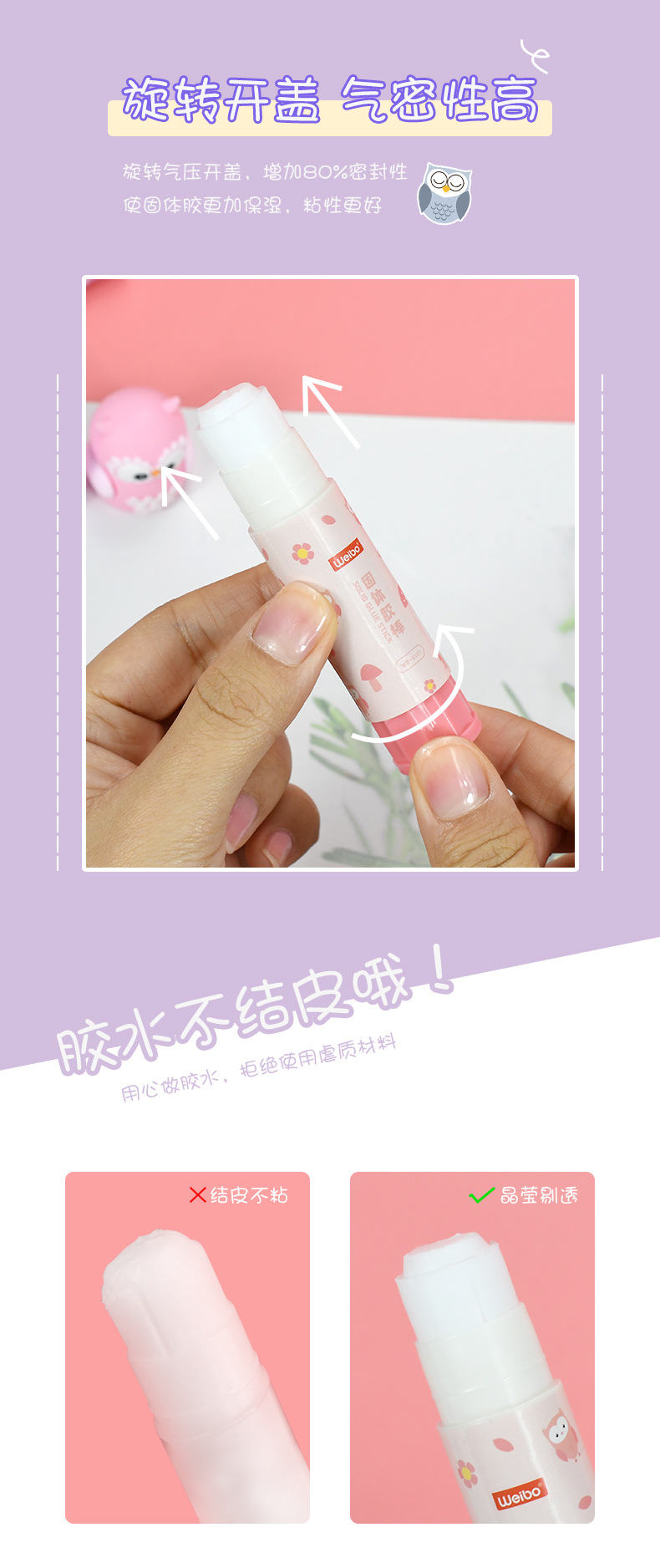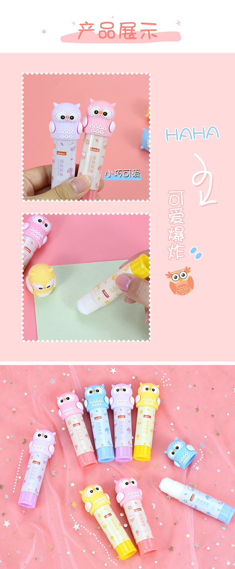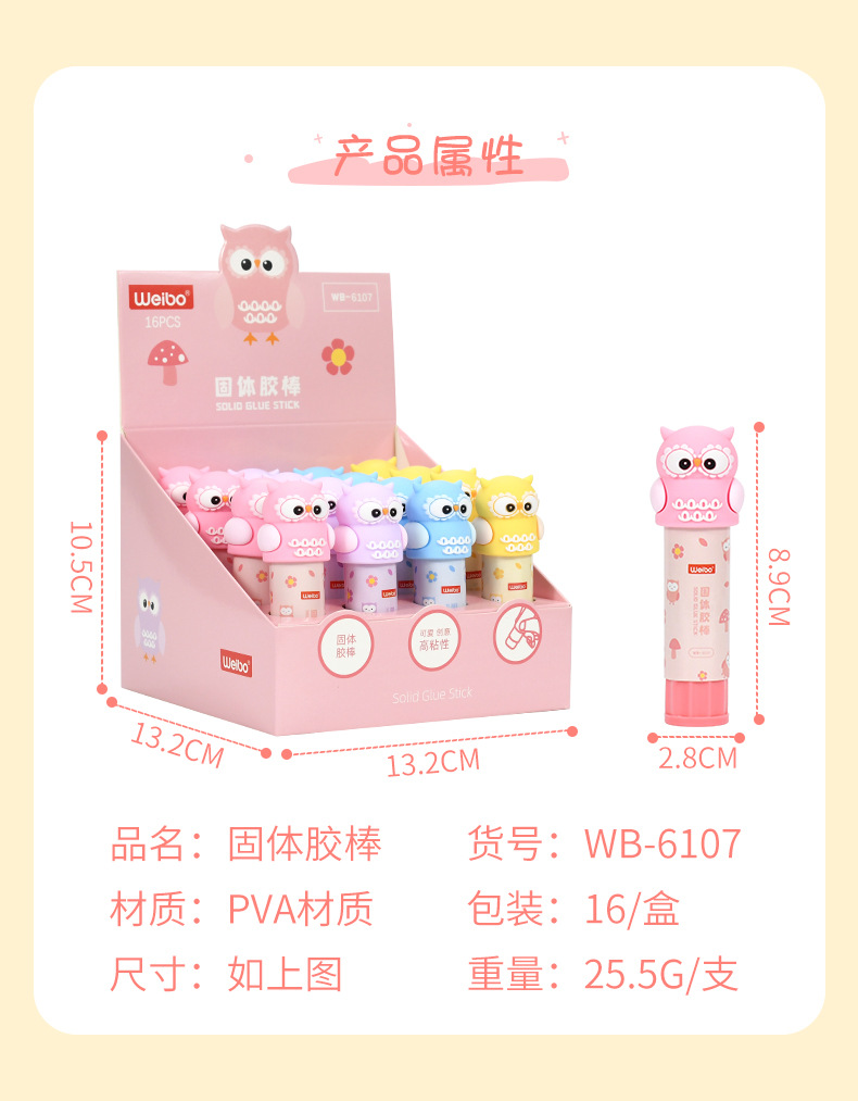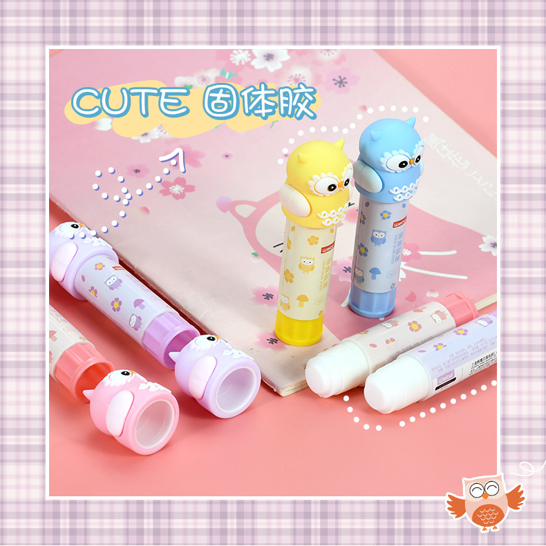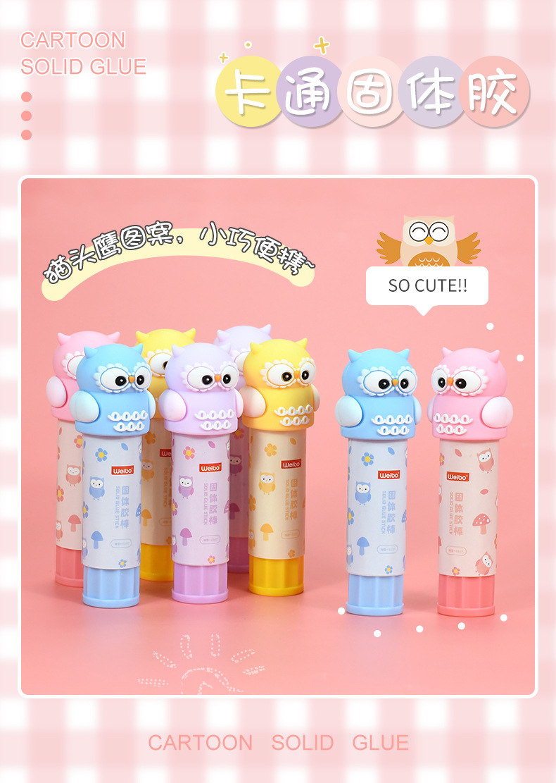 Weibo Stationery's cute owl Solid glue is a multi-color cartoon-shaped glue specially designed for students as a gift