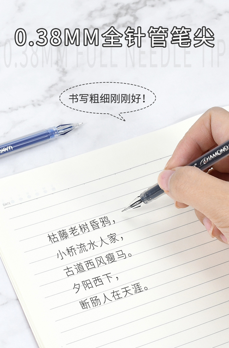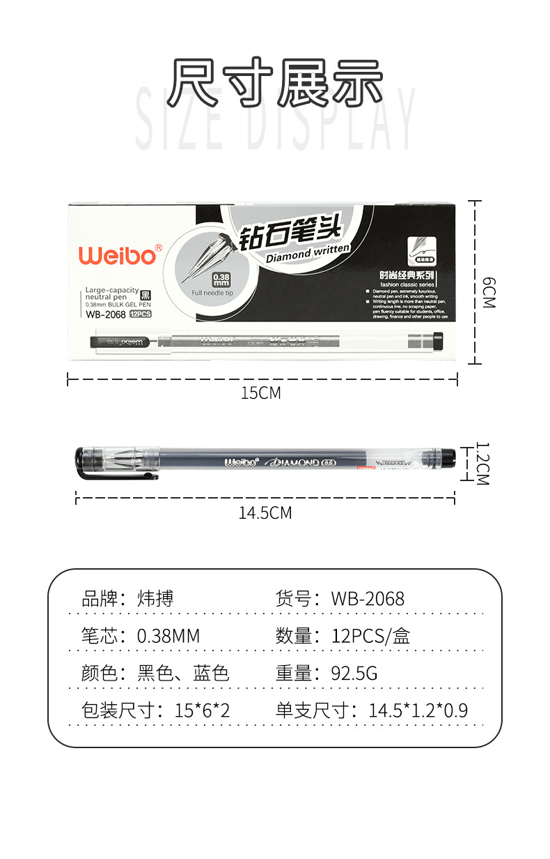Weibo Stationery's new office pen-specific transparent pen barrel, diamond pen tip, novel and creative design gel pen