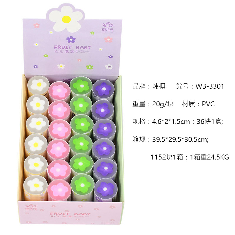 Weibo Stationery Wholesale Cute and Creative Erasers, multi-color round new cartoon animal three-dimensional fragrance Erasers