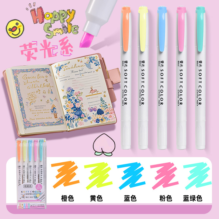 Weiya Hui multi-color highlighters, 35-color hand-drawn duck highlighters with rich colors, 2235A double-headed highlighters