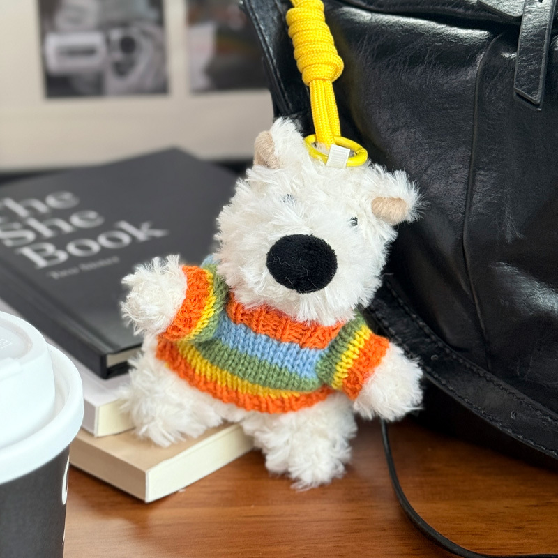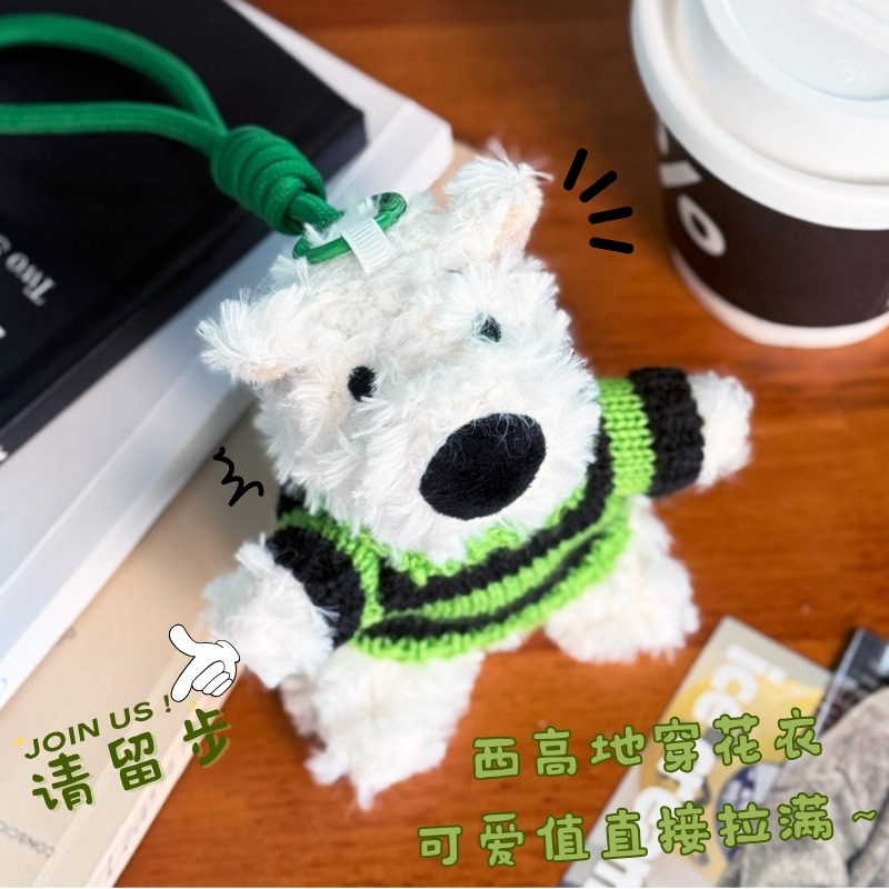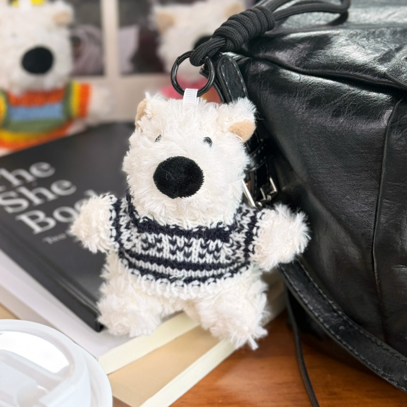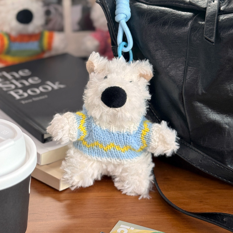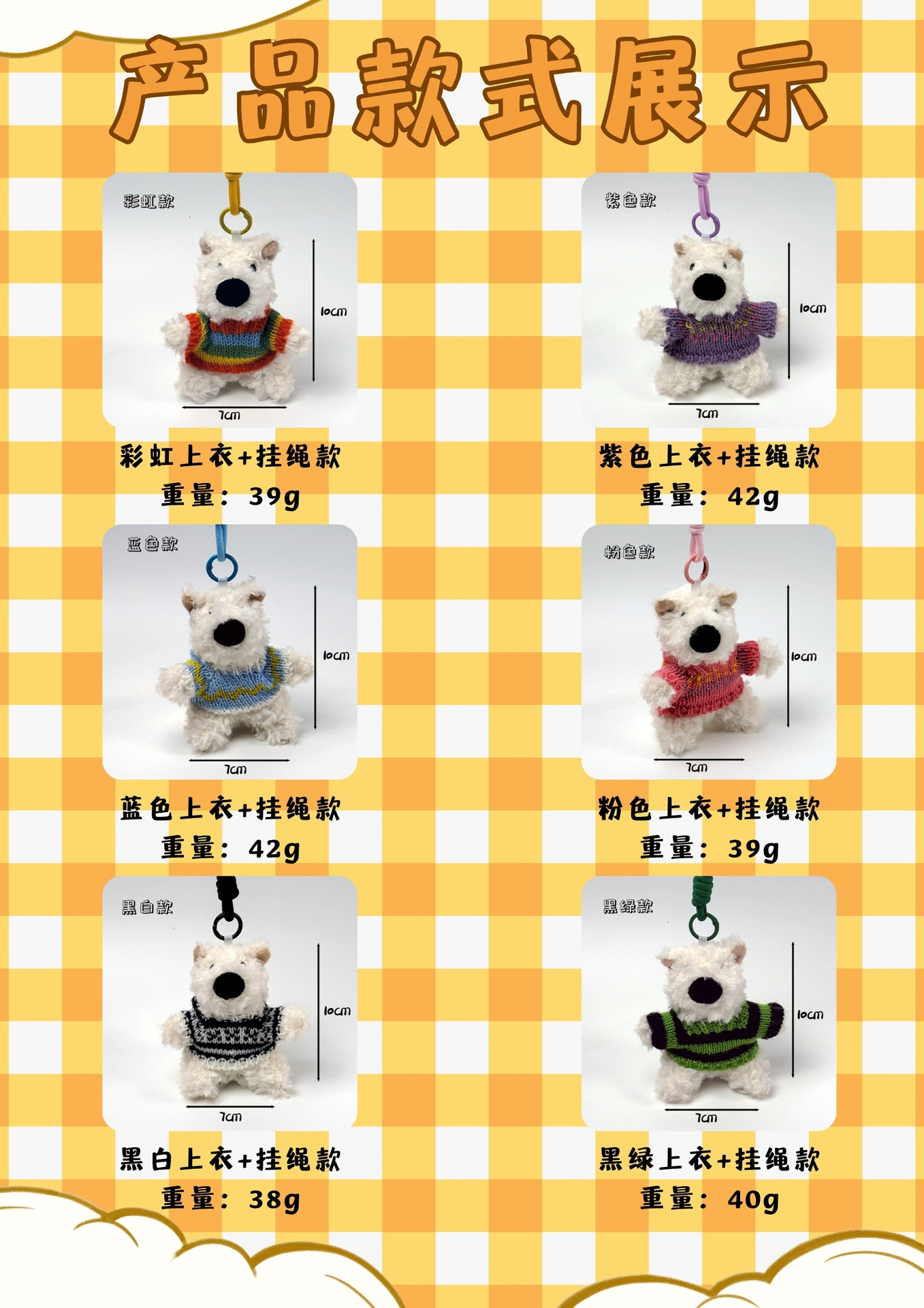 West Highland dog children's plush toys, popular online celebrity small dolls, doll figurines, and small gifts are scattered at the stall