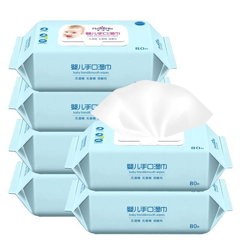 Wet wipes, baby hand and mouth wet wipes, large package with lid, 80 packs, newborn baby and children's wet wipes