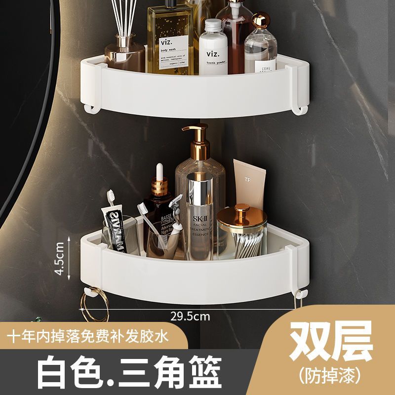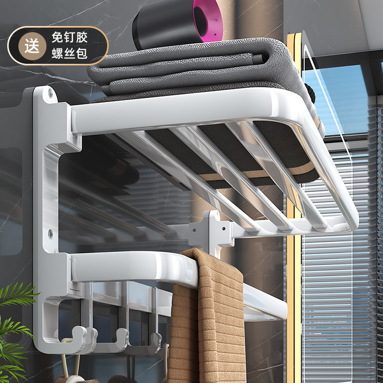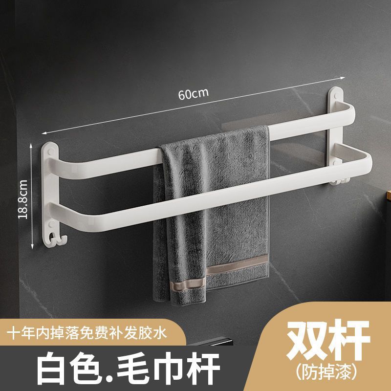 White bathroom towel rack without drilling, toilet bath towel rack, wall-mounted bathroom rack, storage rack, bathroom hanging rack